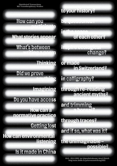 Distributed Transactions, Jahresausstellung Master Transdisziplinarität