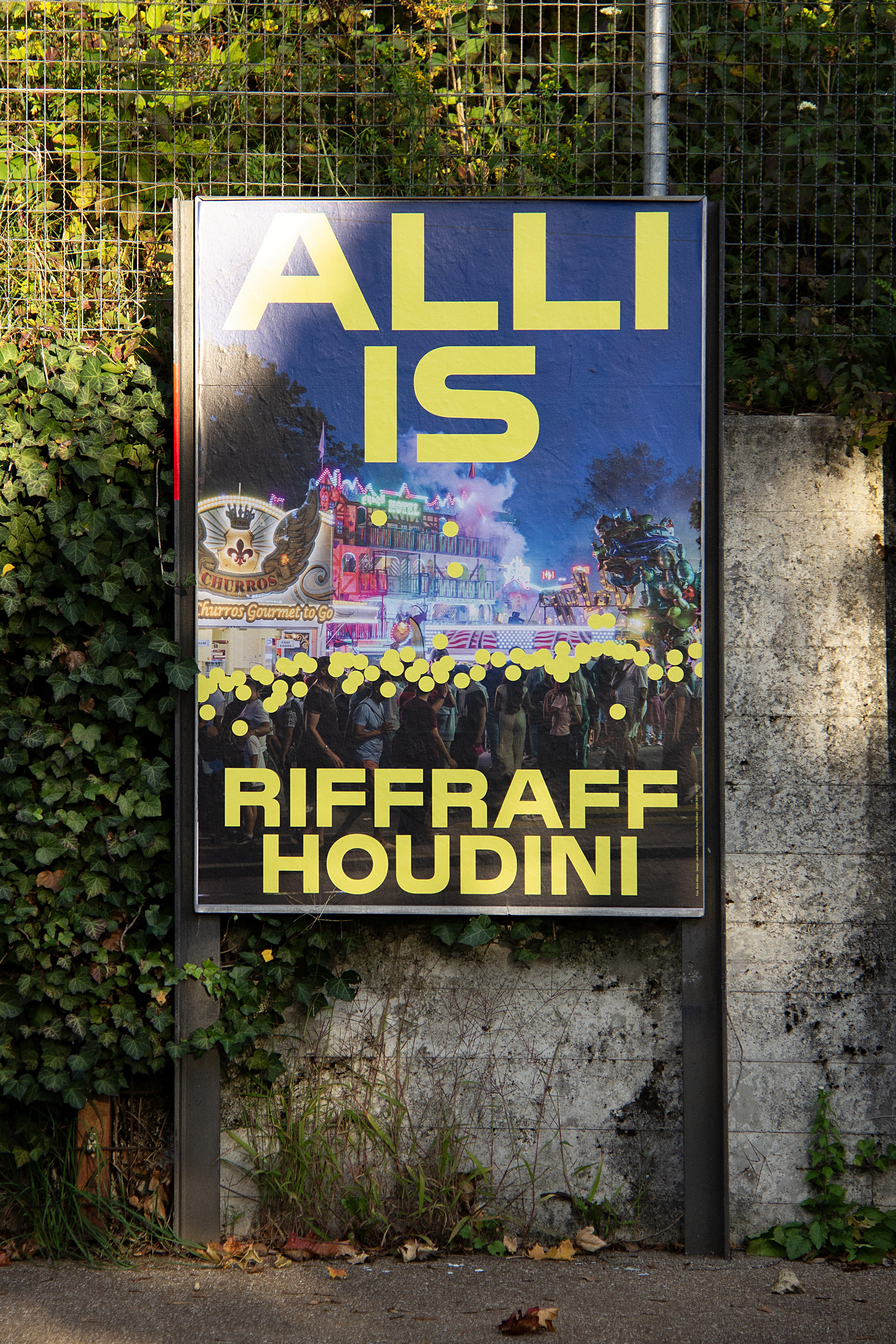 Mariia Larina, Jakob Galler und Finn Stillhart konnten sich im internen Wettbewerb des Minors «Student Design Agency» durchsetzen und gestalteten die Kampagne «Alli is Riffraff/Houdini». Die Plakate und Trailer sind seit dem Herbst 2025 im Einsatz.