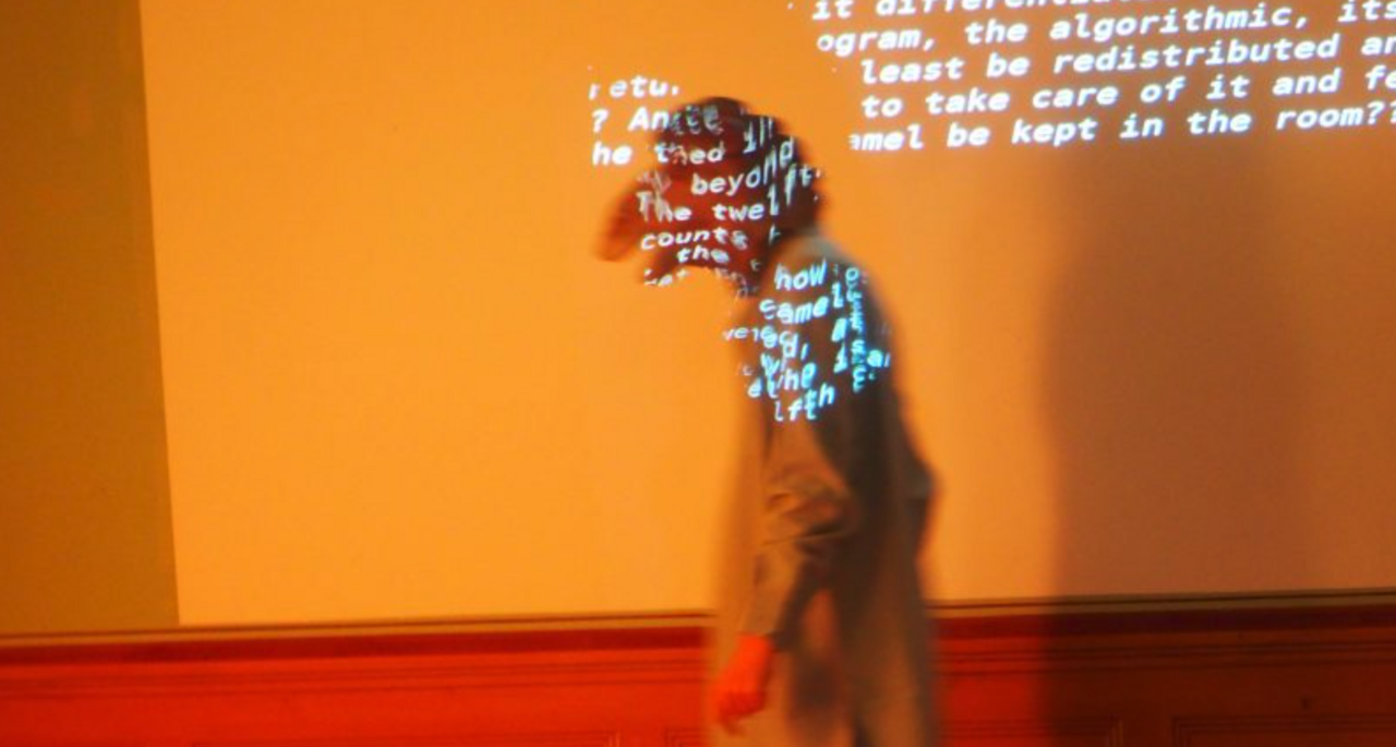 Zurschaustellung des Nichtperfekten der digitalen Technologien: In der Performance «{reclaim the twelfth camel} < code of practice» überzeichnet und dramatisiert Künstler Alexander Tuchaček Mensch-Maschinen-Interaktion. Foto: © Christian Ritter