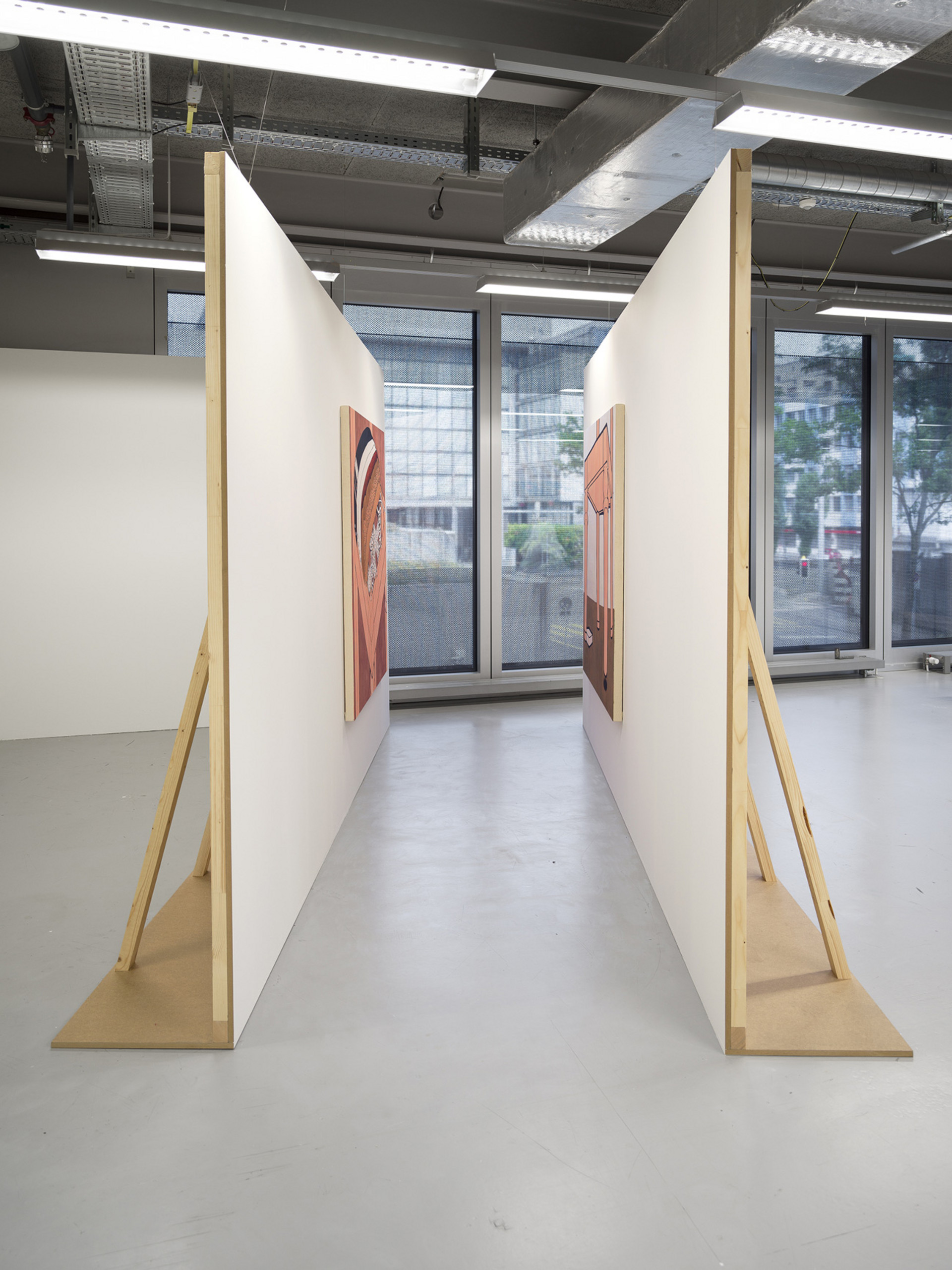 LA CHAIR DES CHOSES 2025 MDF Platten, Holz, Öl auf Leinwand 240 x 400 x 130 cm
