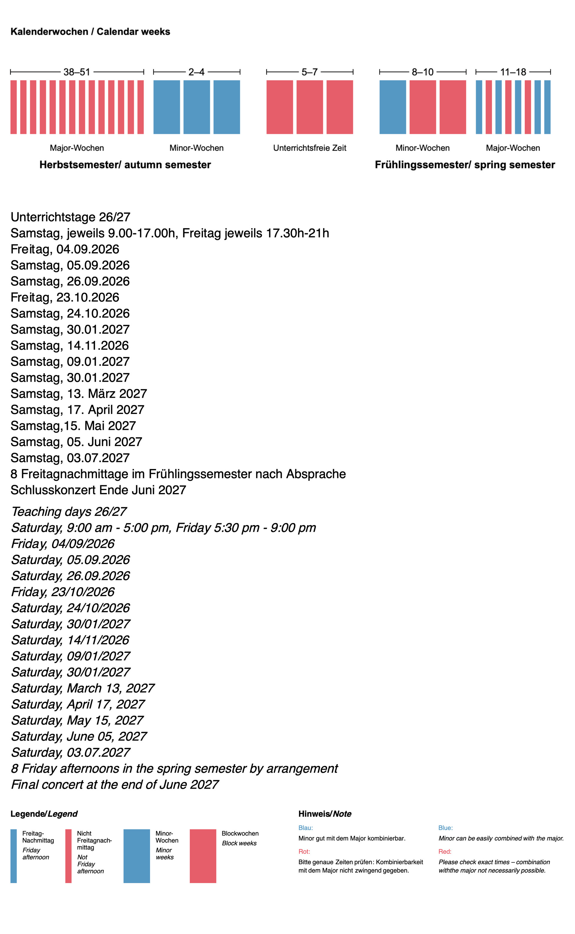 The minor, which is taught in German, is offered by Continuing Education Music. It is aimed at Bachelor’s and Master’s students.