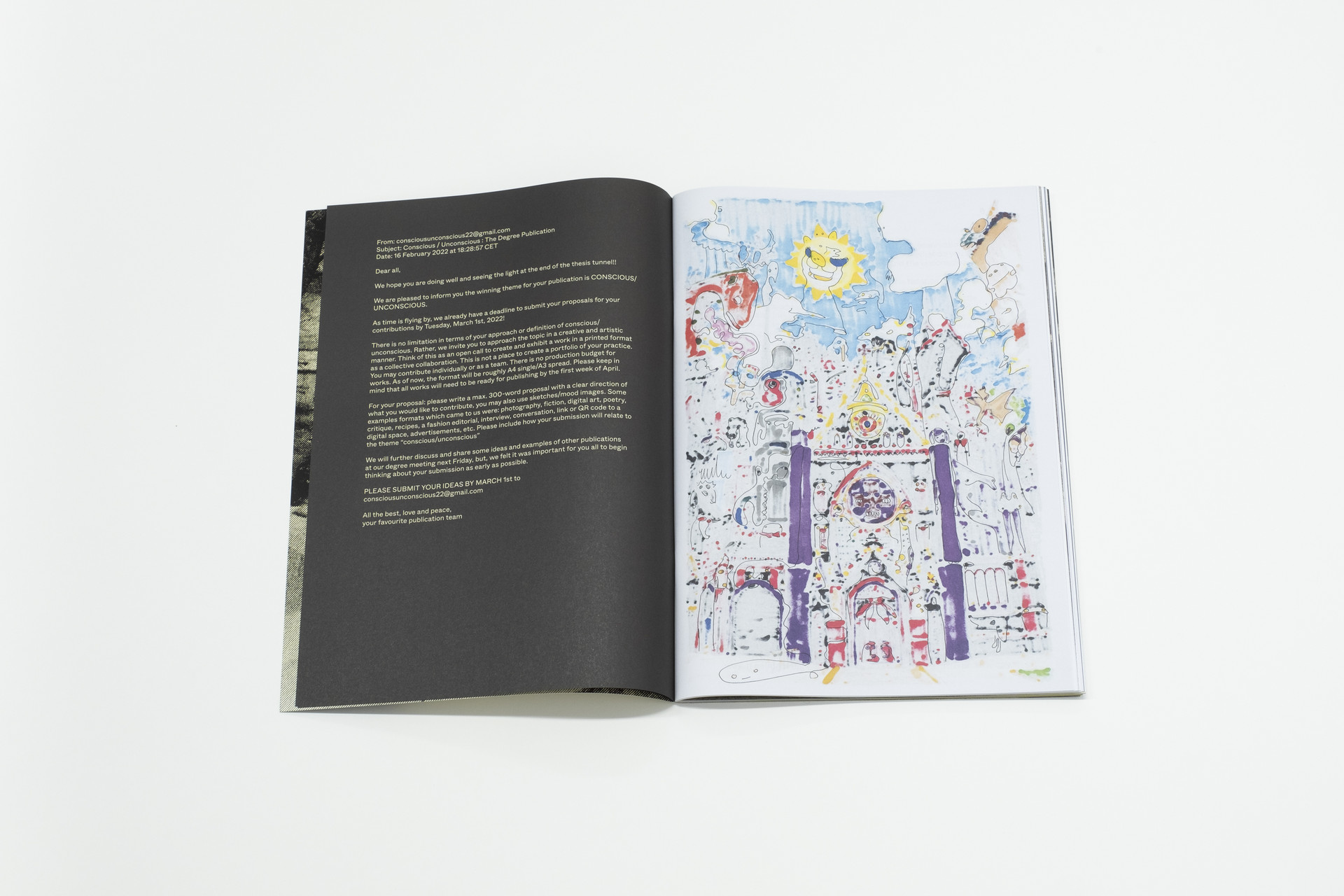 The illustrated book was published as part of the Master Fine Arts diploma exhibition 2022 and brings together contributions on the theme of "Conscious / Unconscious".