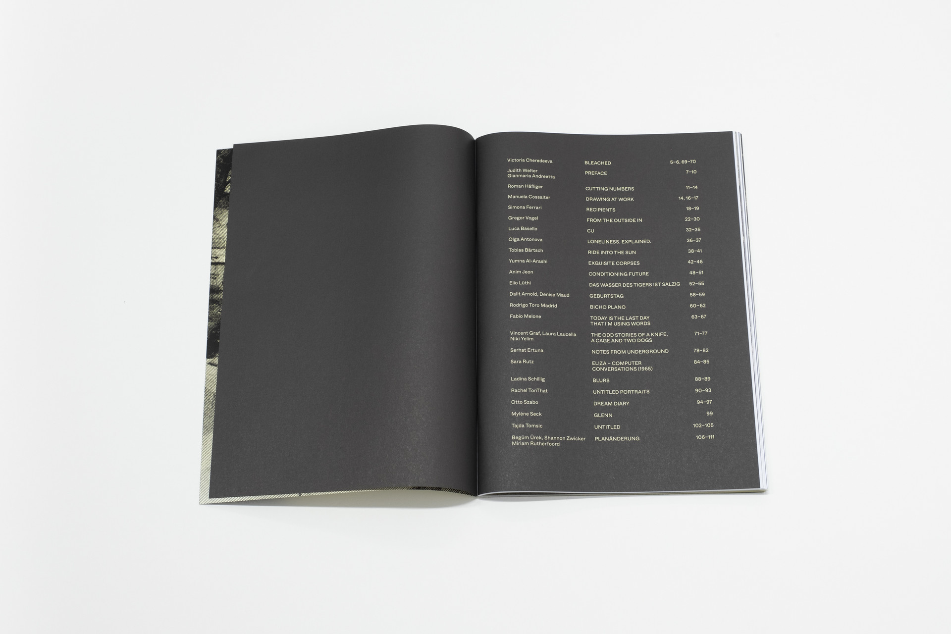 With artistic contributions by Yumna Al-Arashi, Olga Antonova, Dalit Arnold, Denise Aschmann, Tobias Bärtsch, Luca Basello, Victoria Cheredeeva, Manuela Cossalter, Serhat Ertuna, Simona Ferrari, Vincent Graf, Roman Häfliger, Yelim Hwang, Anim Jeon, Laura Laucella, Elio Lüthi, Fabio Melone, Miriam Rutherfoord Sara Rutz, Ladina Gisela, Schilling Myléne Seck, Otto Szabo, Tajda Tomsic, Rachel TonThat, Rodrigo Toro Madrid, Begüm Ürek, Gregor Vogel, Shannon Zwicker, an introduction by the Editorial Team and a conversation between Judith Welter and Gianmaria Andreetta.