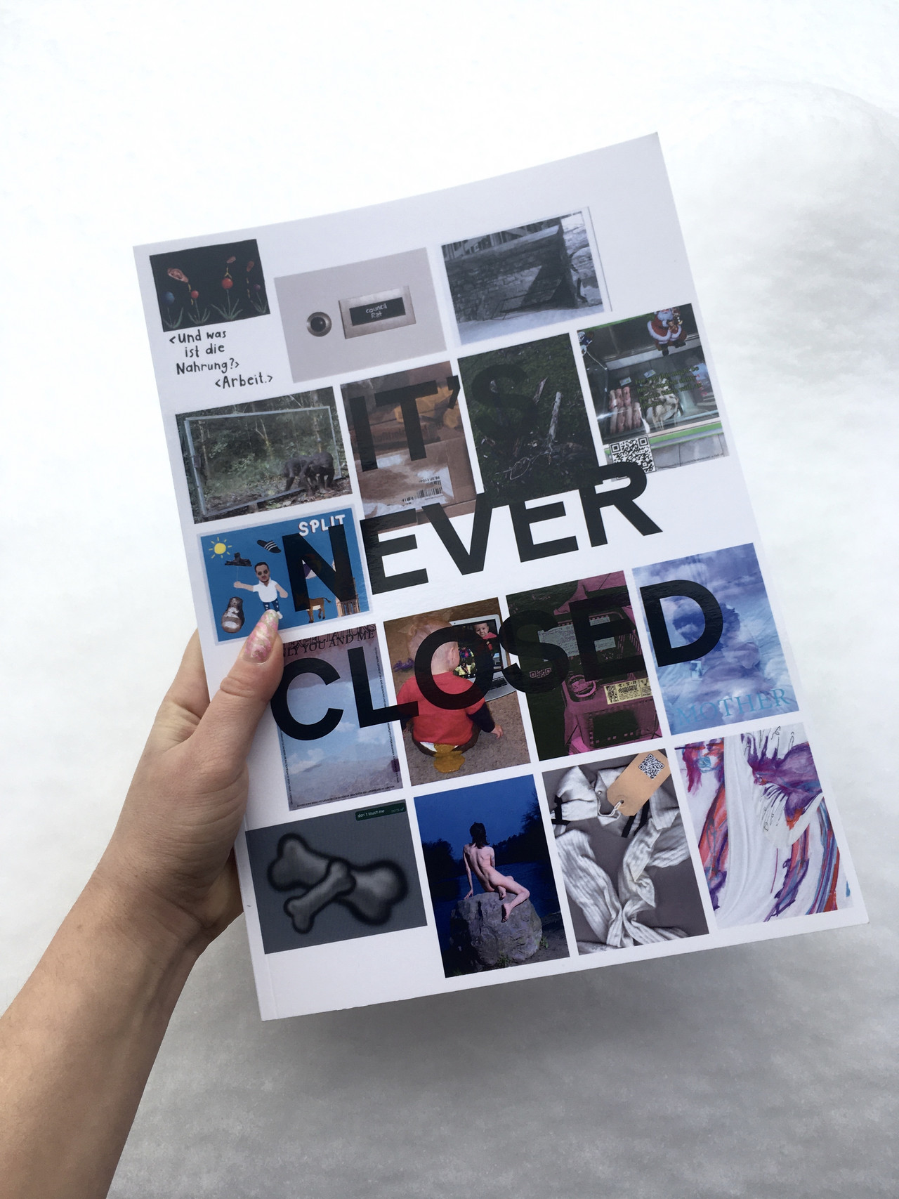 The class of Nora Turato and Nico Sebastian Meyer in our Bachelor of Fine Arts programme has released the results of their Praxis Module in the fall semester 2020 in the publication “It’s Never Closed” as an alternative to the cancelled semester exhibition. With contributions by Angelina Yerly, Elena Wirth, André Veigas, Livia Thommen, Nathalie Smrkovsky, Nike Shento, Chahida Rezgueni, Fabio Prosdocimi, Pavle Mijuca, Jenny Leung, Ivana Jurisic, Martin Jung, Giorgio Graf, Lukas Caprez, Jael Bieri and Yara Qwendolin Bhend.