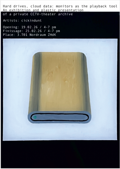 Hard drives, cloud data: monitors as the playback tool. An exhibition and plastic presentation of a private CCTV-theater archive.