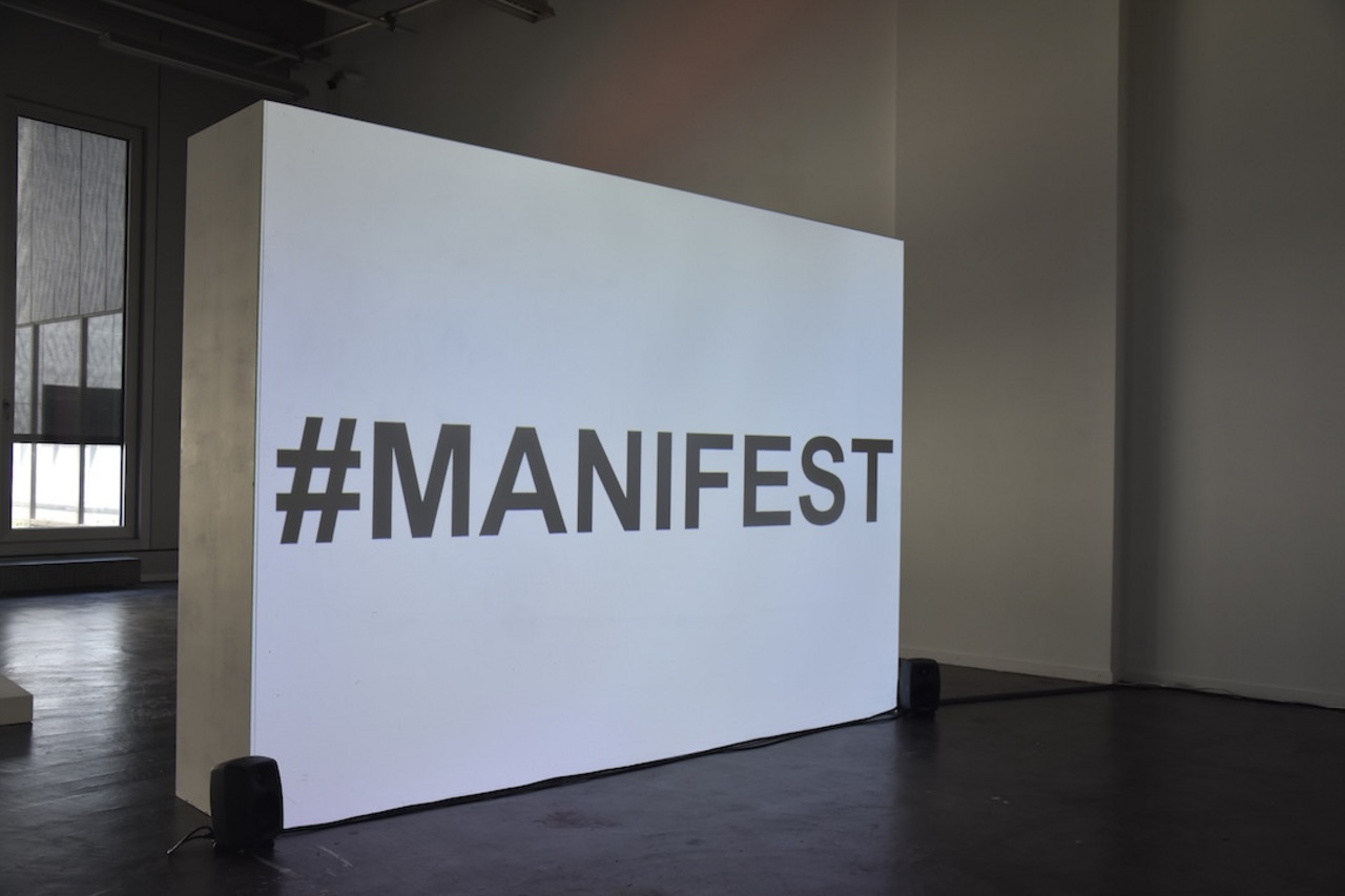 Video projection on free-standing wall, speakers, HD video with sound, color, loop, 3'45'', Sound by Chewlie