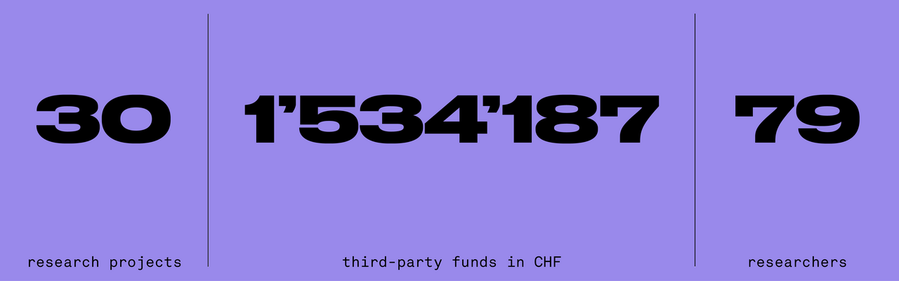 Mit «Research Video» und «Swiss Graphic Design & Typography Revisted» sind zwei gross angelegte SNF Projekte beendet worden. Von sechs laufenden Innosuisse-Förderungen konnte das Projekt «A Playful Exergame Training Intervention» erfolgreich zum Abschluss gebracht werden. Neu initiierte Projekte erhielten unter anderem Unterstützung von der Gebert Rüf Stiftung oder BRIDGE Proof of Concept sowie weiteren Stiftungen.