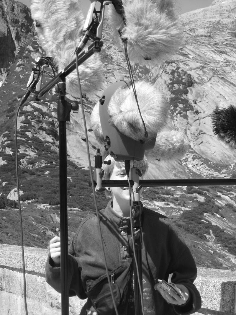 Our research process consisted of two phases: Image and sound recording in the Swiss mountains and sound postproduction in the sound lab at the ICST of the ZHDK. In the sound postproduction phase, we divided the research team into two groups. The two students (Lily Pelaud and Oleksandra Tsapko) created an audiovisual installation from the recorded material with only one requirement: to use a surround five-channel sound system with equipment on loan from the ZHDK for DFA students. Otherwise, they were free in their artistic approach.