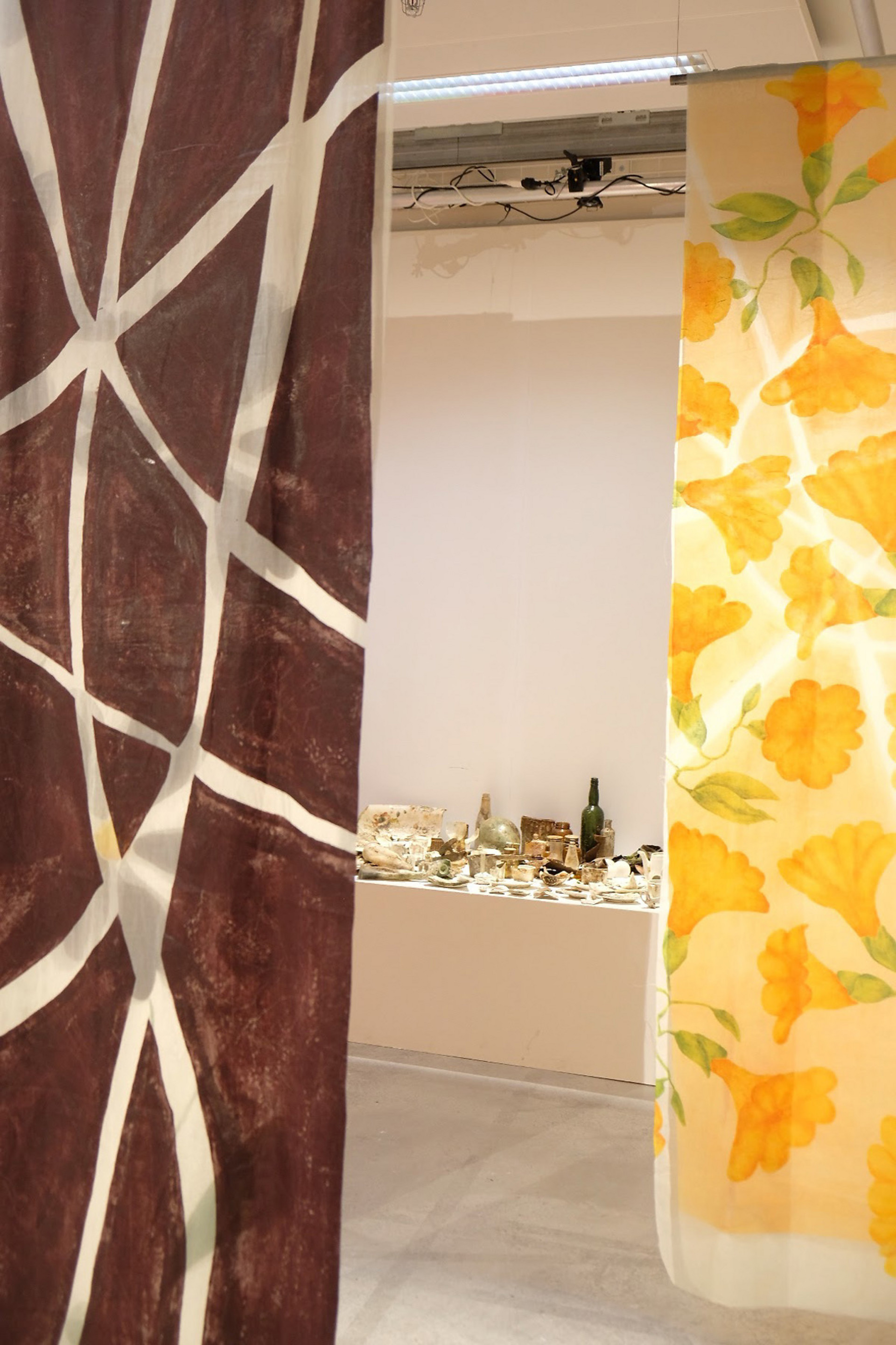 Das Projekt «Gwunder» erkundet das Erlebnis des Suchens und Findens. In meiner Installation präsentiere ich Gegenstände, die ich aus den Überresten des in den 1960er Jahren niedergebrannten Grand Hotels auf meinem Heimatberg ausgegraben habe. Die Stoffbanner erweitern die Motive und Geschichten dieser Fundstücke. In meiner Ausstellung verbinde ich das Gefühl des Erlebens und Graben mit den Gegenständen und ihre persönliche und historische Geschichte.