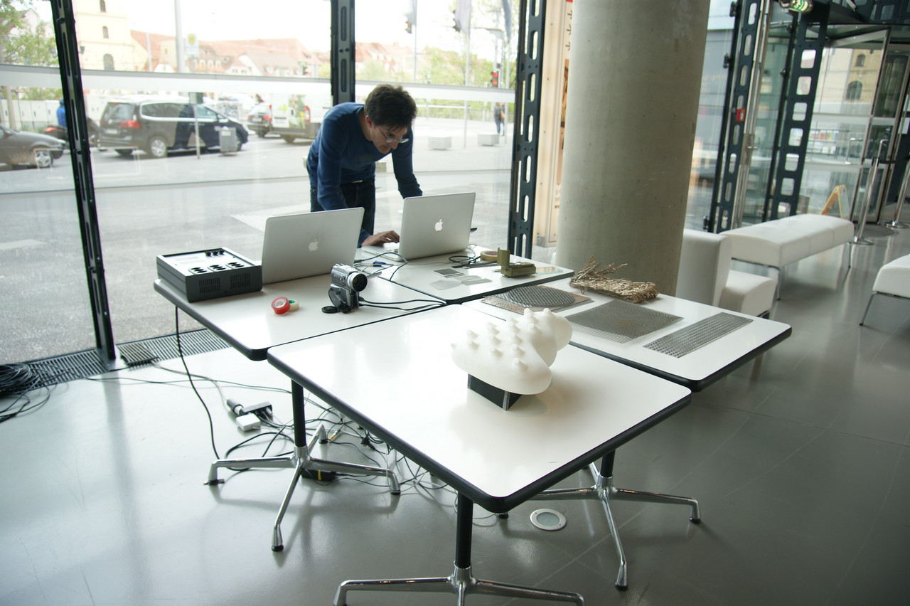 The installation encourages to play with the 3d-model resulting in an immediate intervention in the city. Everyone can participate in the interactive performance on 10.05.2012 from 8 pm and help shape the urban space with a simple flashlight!