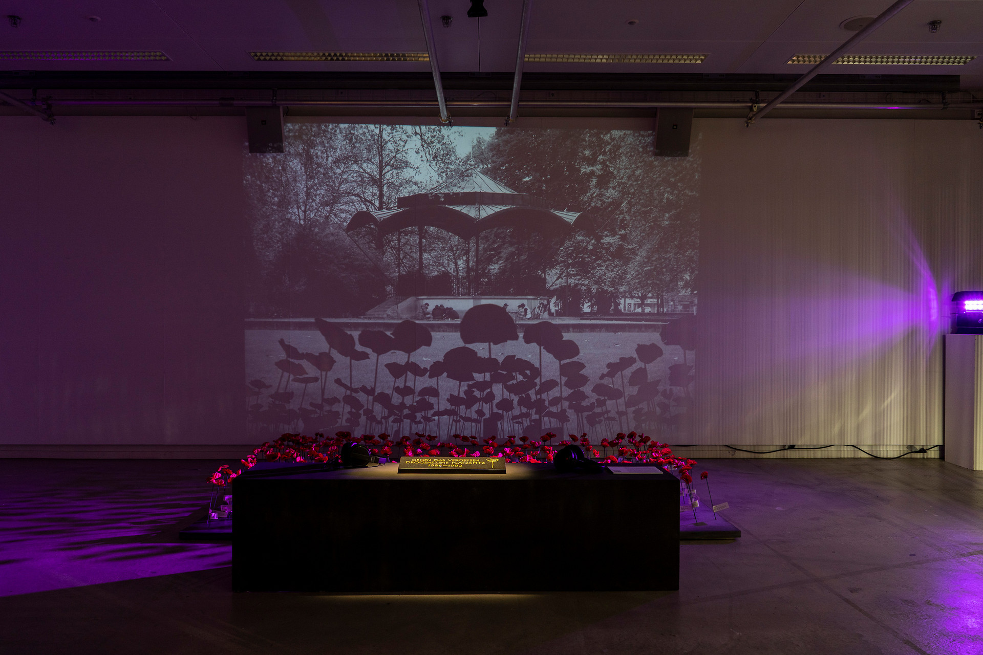 Die Zeit der offenen Drogenszene auf dem Platzspitz von 1986–1992 war einschneidend und traumatisch, aber auf dem Platz selbst erzählt nichts von dieser Geschichte. Das Mohnmal, bestehend aus Mohnblumen und einer Gedenktafel am Pavillon, ändert das nun. Die Aussaat findet am 19. 3. 2023 statt. Gemeinsam werden Papiermohnblumen, die Samenträger, in die Erde gesteckt. Die Besucher:innen der Diplomausstellung sind dazu eingeladen, eine Papierblume aus der Installation zu pflücken und am Happening teilzunehmen. So wird ein kollektives Erinnern angeregt und ein Mahnmal gepflanzt für die Verstorbenen, aber auch für die Überlebenden. Gegen das Vergessen.