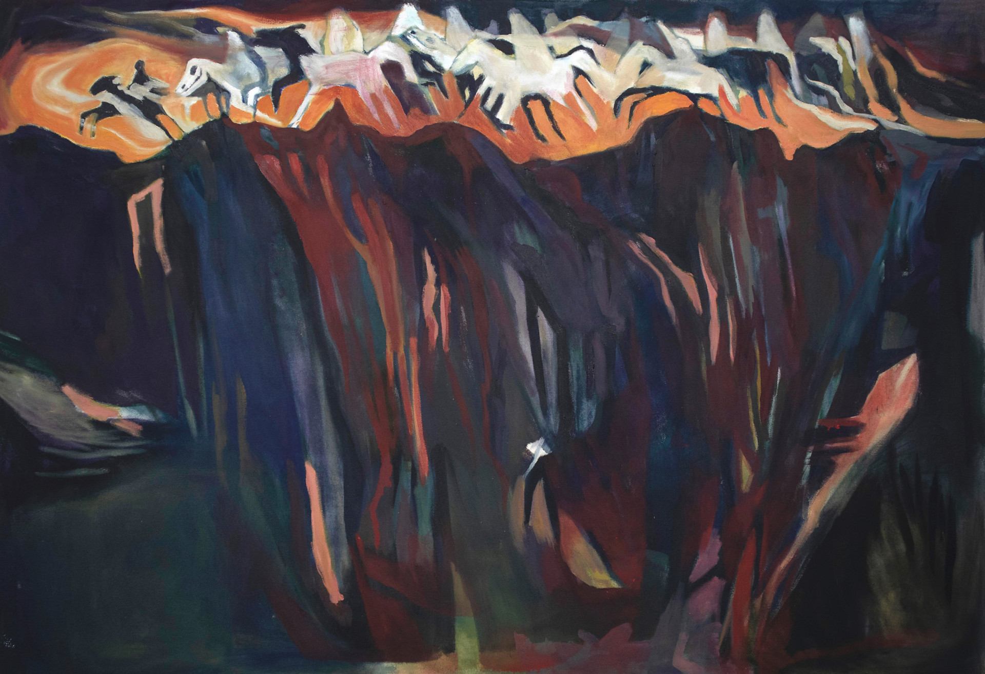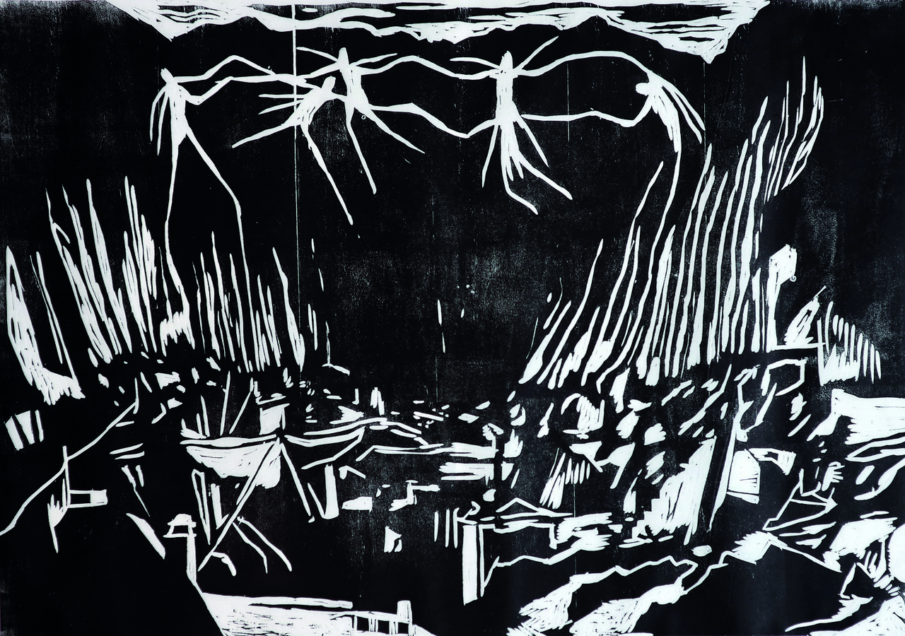 Die Arbeit wagt die Konfrontation mit monströsen Naturgewalten. Die Malereien zeigen bedrohliche Wetterereignisse, die vor allem im Alpenraum aufgrund des Klimawandels immer häufiger auftreten. Die elementare Gefahr des Klimawandels wird personifiziert und findet sich in Form längst vergessener Ungeheuer wieder. In Anlehnung an Natursagen der Schweizer Berge fragt die Arbeit: Wie erleben wir diese Bedrohungen? Wie können wir einer brutalen, unheilvollen Natur begegnen, die selbst eine Folge des menschlichen Handelns ist?