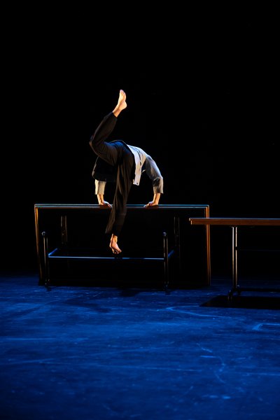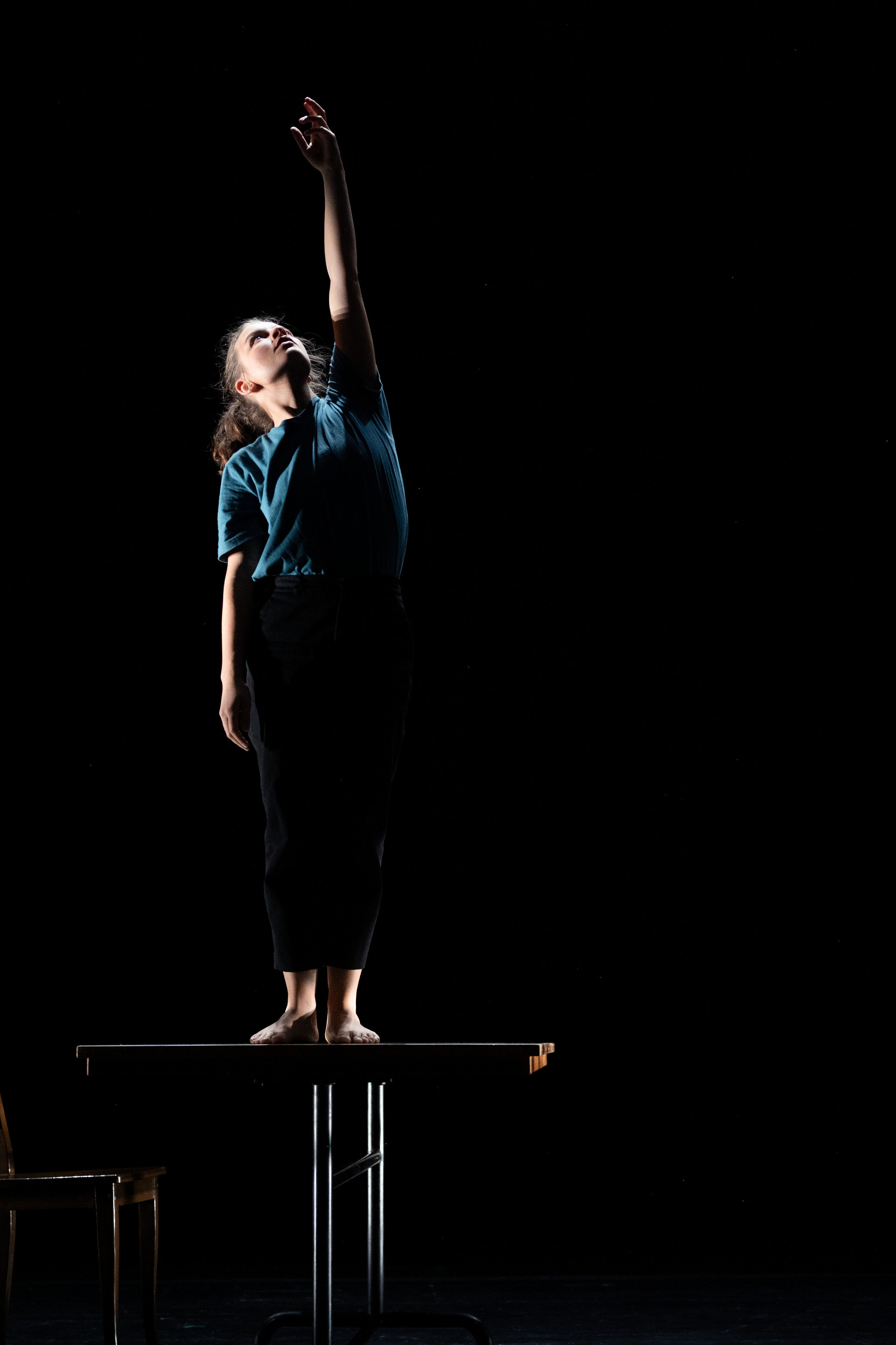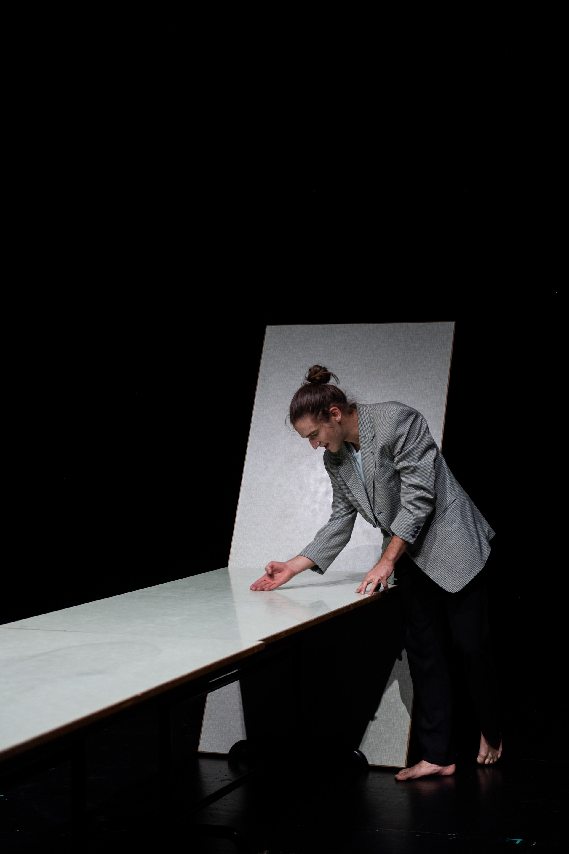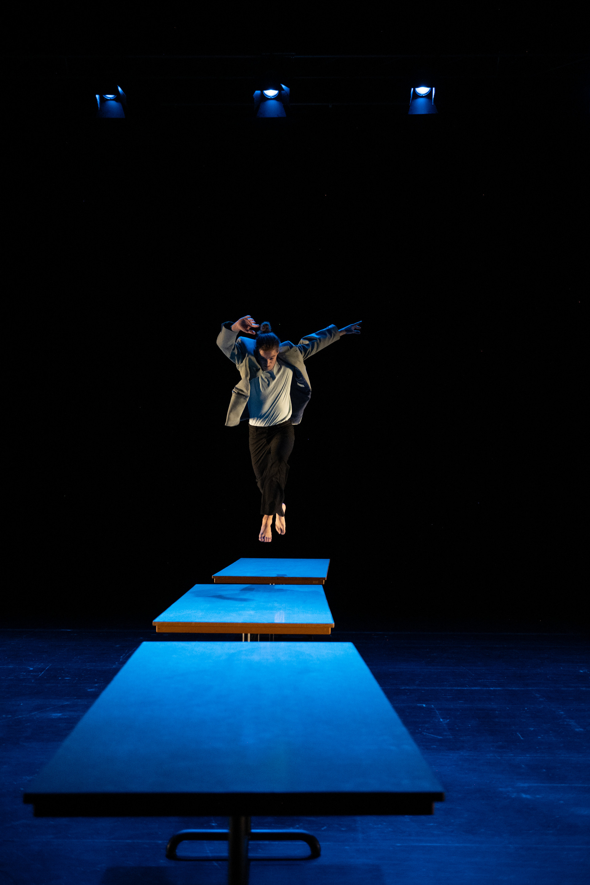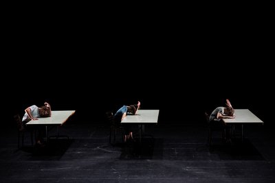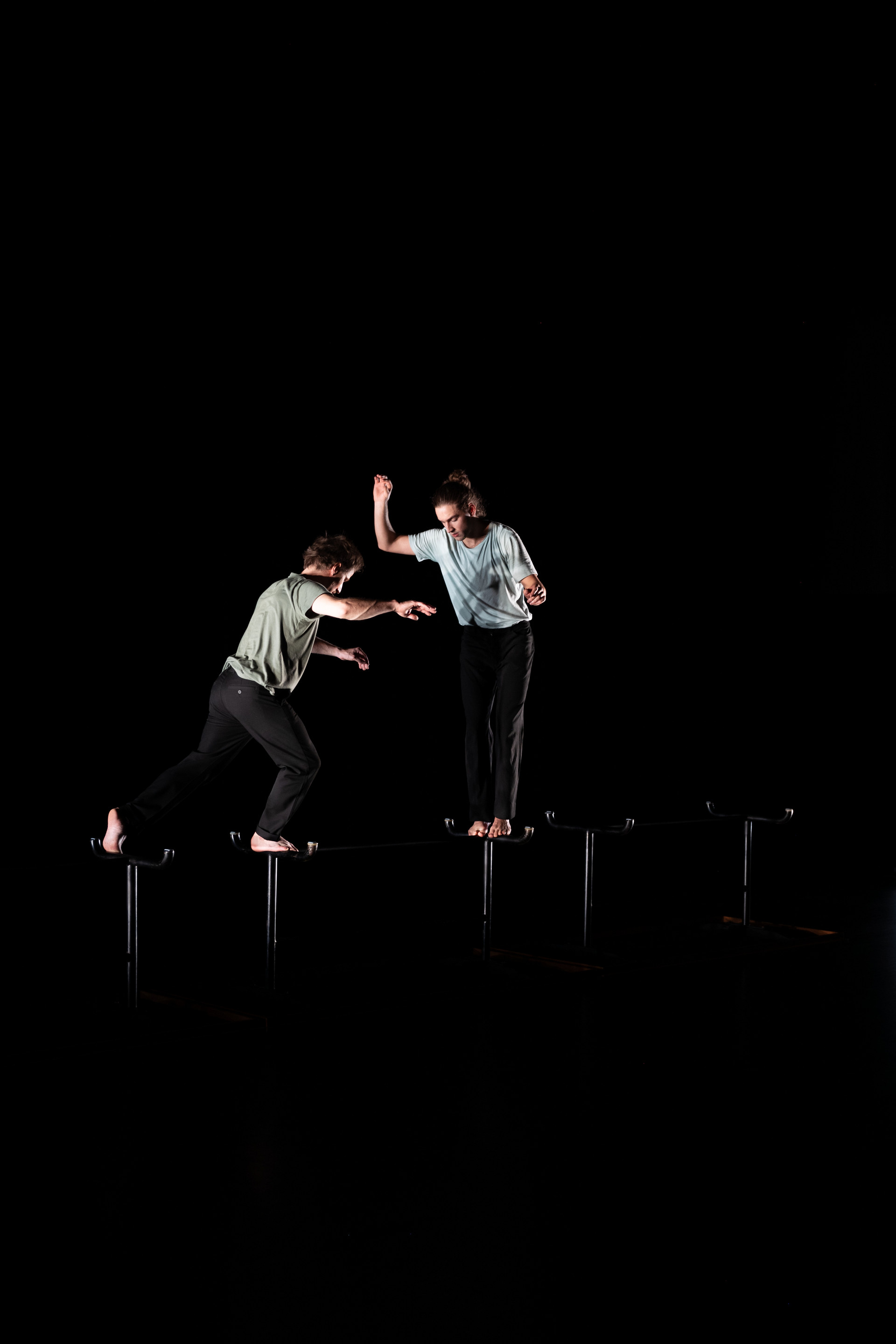 Zwischen drei Tischen und drei Stühlen erkunden drei Schauspielende die Herausforderungen des Erwachsenwerdens im Fluss dynamischer Choreografien, Akrobatik, Text und Musik.