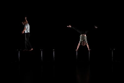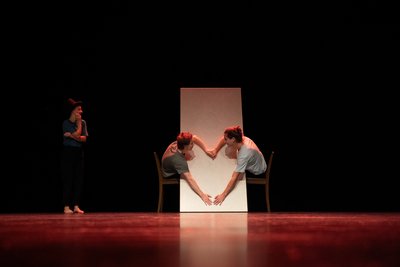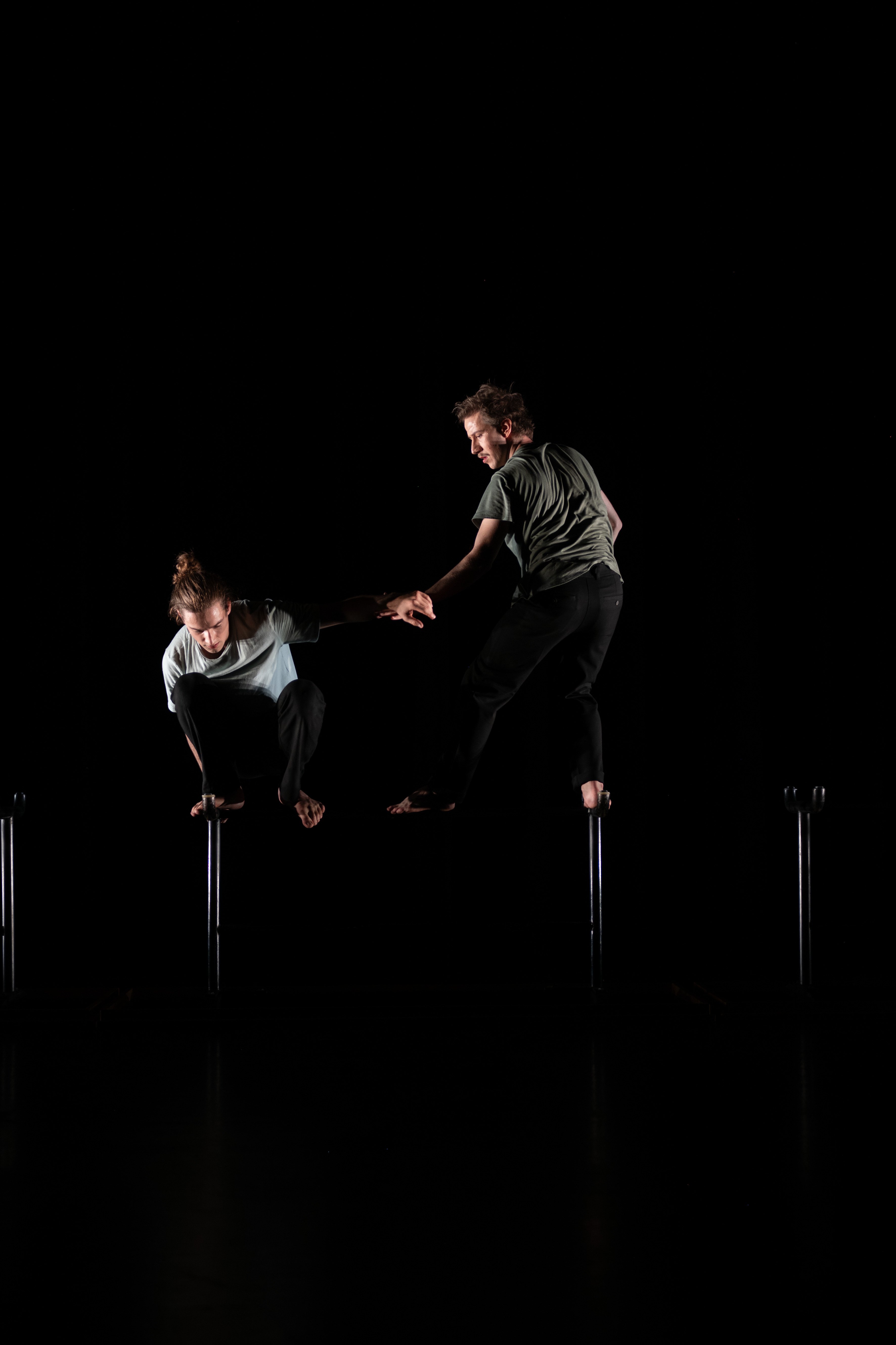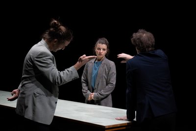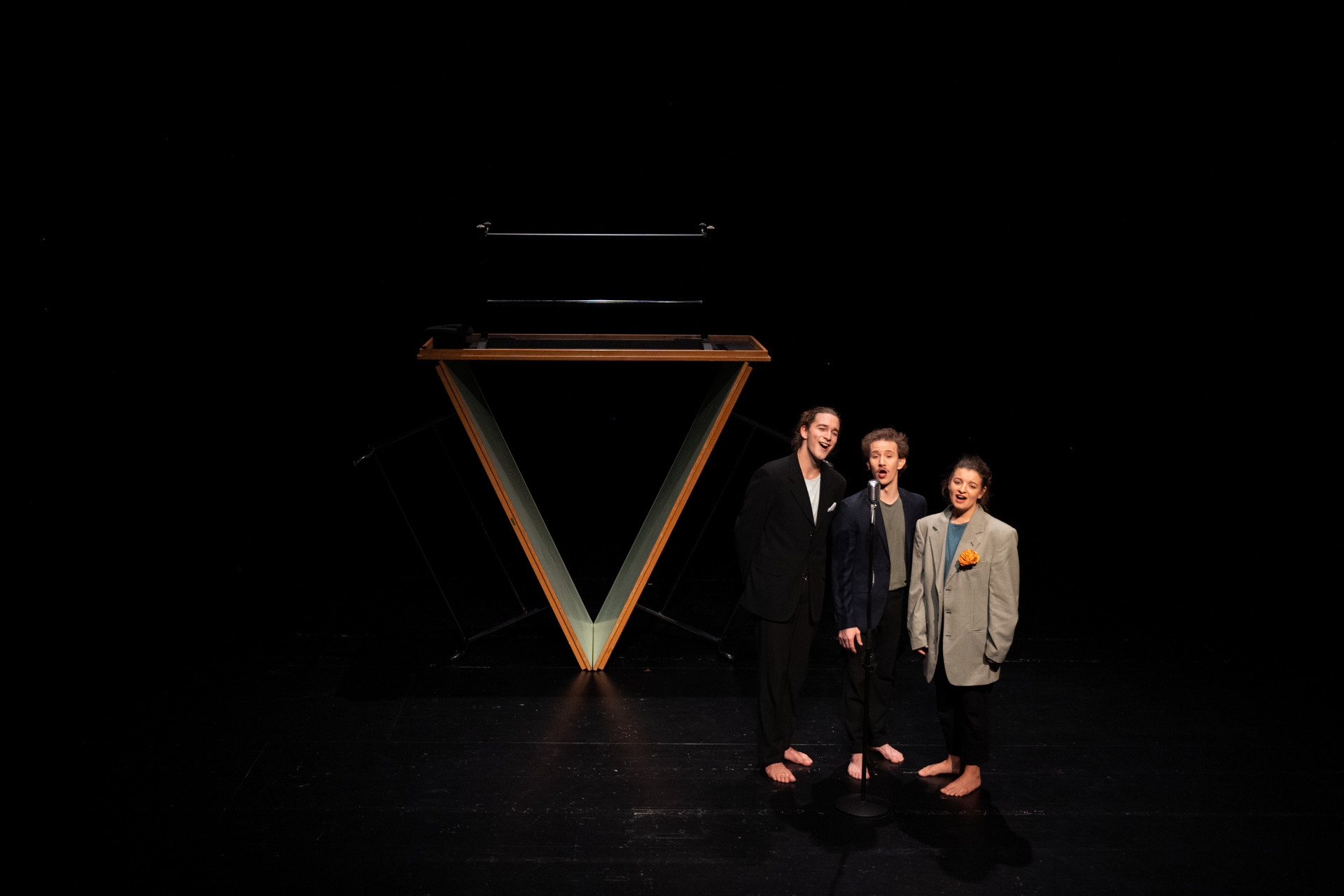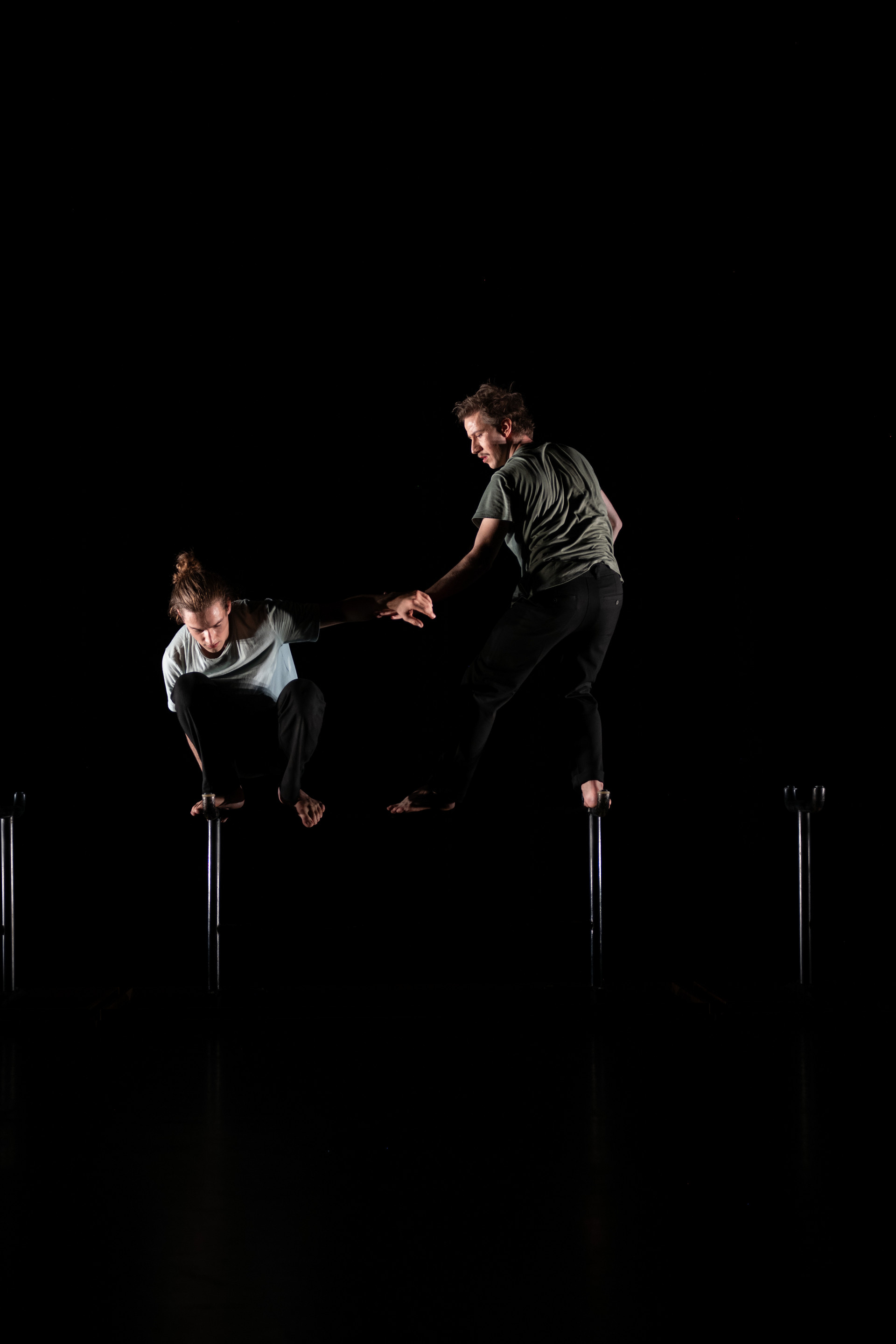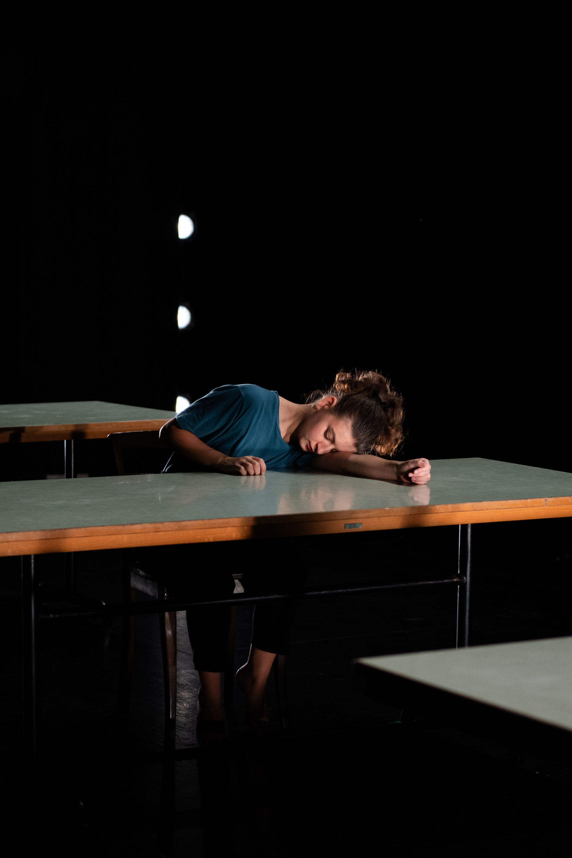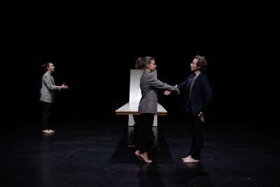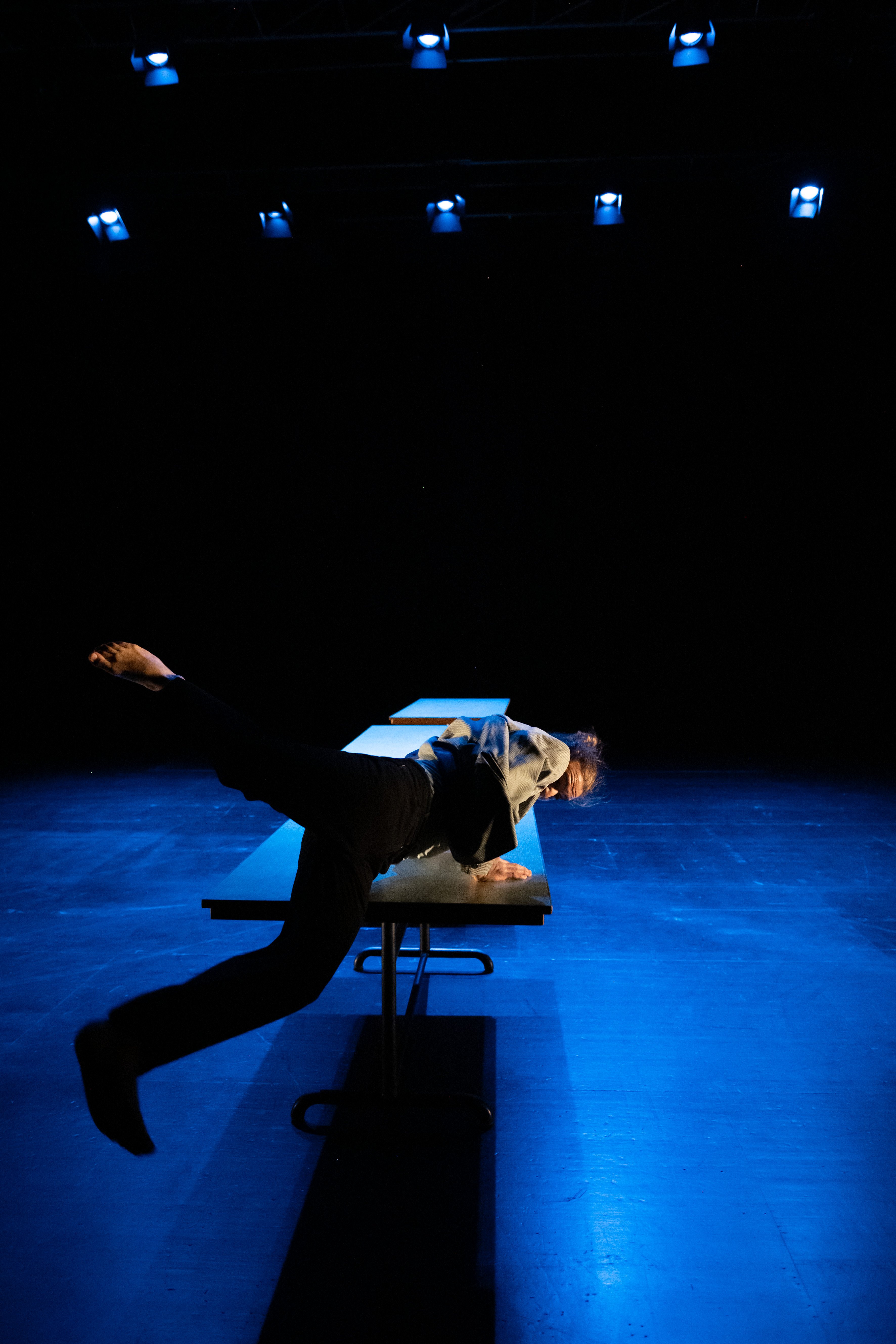 Zwischen drei Tischen und drei Stühlen erkunden drei Schauspielende die Herausforderungen des Erwachsenwerdens im Fluss dynamischer Choreografien, Akrobatik, Text und Musik.