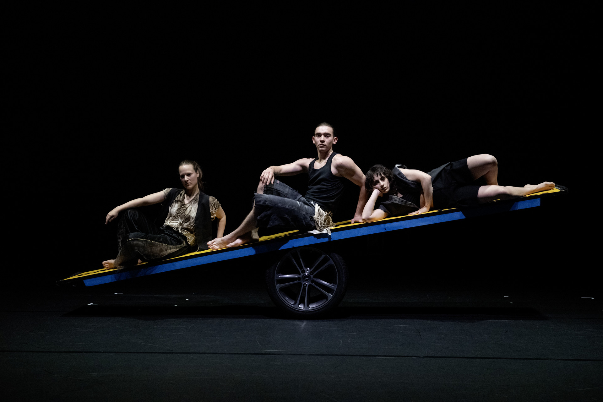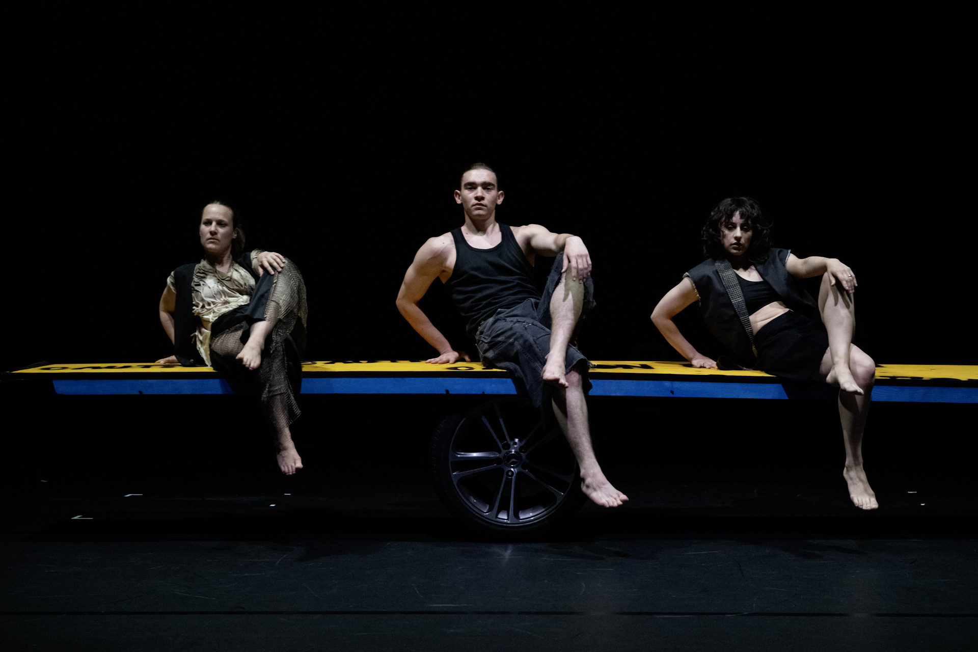 The dancers sway in the unstable installation, unfolding a picture that revolves around power, inequality. In the writing of the body and dance sequences images of the social frameworks that exist are presented one by one. In these relationships we explore and experiment with ways to escape and subvert these sequences and controls. We will establish a strong connection and create a dialogue with reality again in the hard boiled wonderland.