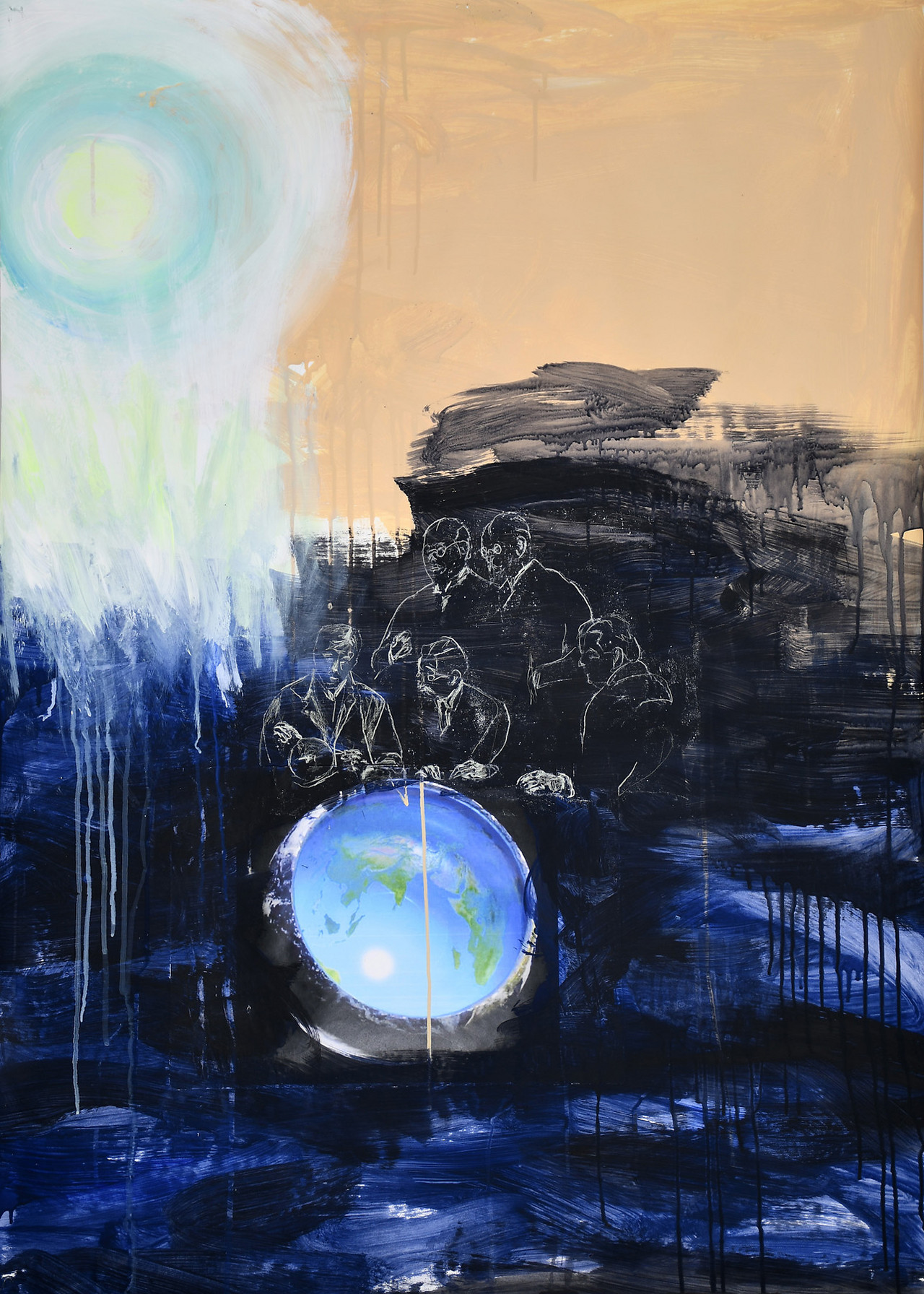 Um Glaubwürdigkeit herzustellen, wird von Verschwörungstheoretikern oft auf vermeintliche Verbindungen mit andern Verschwörungstheorien verwiesen. In meiner Arbeit nehme ich die Ästhetik der Indiziensuche auf: das Schaffen von Zusammenhängen, das Entdecken und Vergrössern von Details. Malerisch habe ich das Wiederholen, Übertreiben und Übermalen genutzt, um den Motiven der Verschwörungstheorien auf den Grund zu gehen und sie zu entlarven. Der Umgang mit dem Thema durch die Mittel der Malerei hat mir geholfen, dieses selbstbestimmt zu verarbeiten.