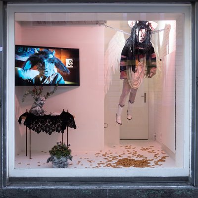We are happy to announce their first exhibition, "I am Santa Sangre.-" by Sabrina Röthlisberger Belkacem, who lives and works in Geneva. Her work takes the form of videos, performances, installations, and texts that address the links between science and death, power and survival. She weaves a rhizome of references from art history to pop-culture, relating to her own reality and social experience.