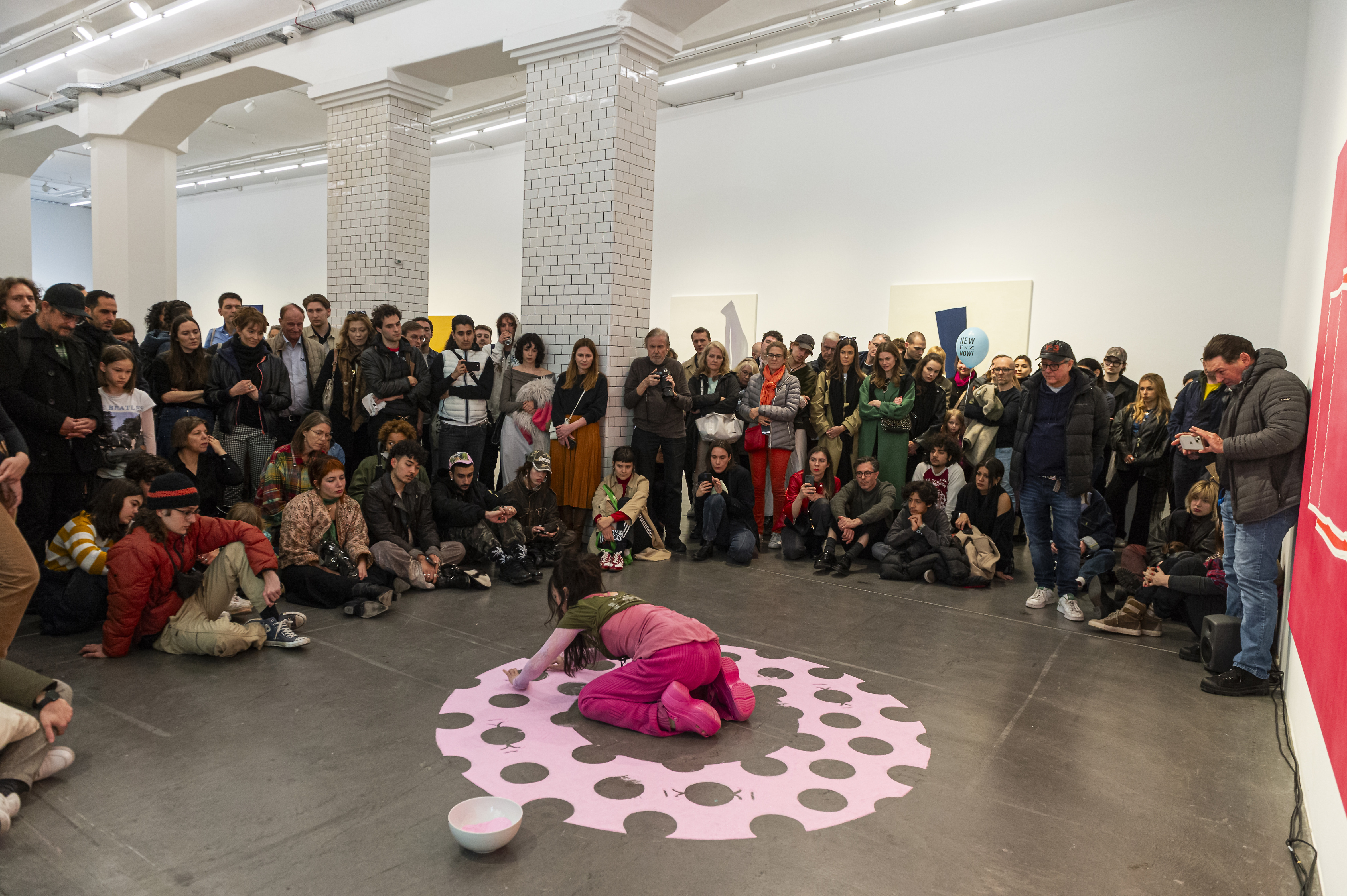 ZHdK Fine Arts students Nikita Purpu, David Dragan, Ice Wong Kei Suet, Oana Popa and Arttu Palmio, teaching assistant in the Department of Fine Arts, were selected by a jury and held their performances on Saturday, 23 March at the Hauser & Wirth Gallery in Zurich. They referenced works by the artist Cathy Josefowitz, which can be seen in the current exhibition "Cathy Josefotwitz. Release" .