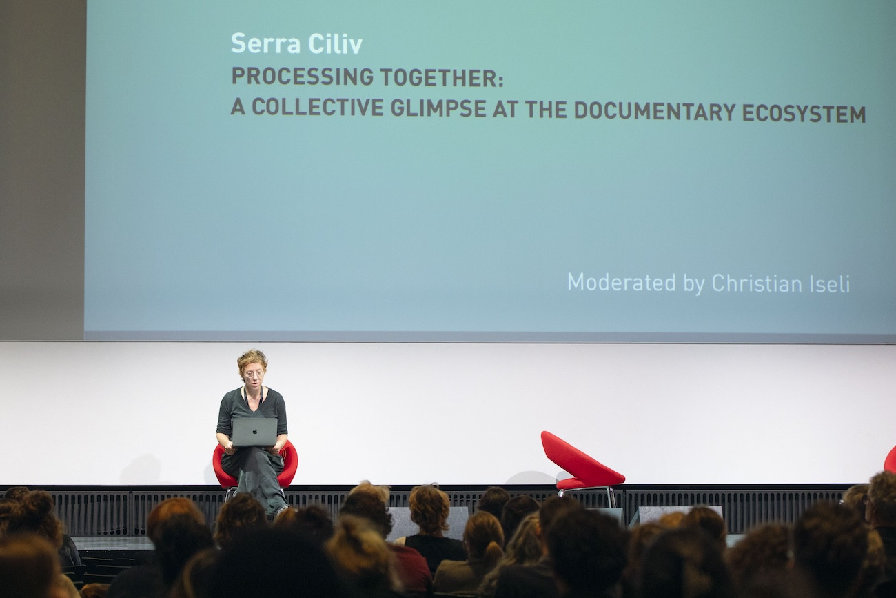 Zu den Höhepunkten zählte auch Serra Ciliv, die sich in England mit Psychotherapie für Filmschaffende beschäftigt. Am ZDOK.25 hat sie mit der Unterstützung von Freiwilligen aus dem Publikum eine Therapiesitzung nachgestellt. Die Freiwilligen haben unterschiedliche Rollen eingenommen, wie beispielsweise die Rolle einer Regieperson und der/des Protagonist:in und eines Geldgebers. Es ging darum zu sehen, welche Beziehungsmuster und Dynamiken entstehen und diese zu hinterfragen und zu durchbrechen.
