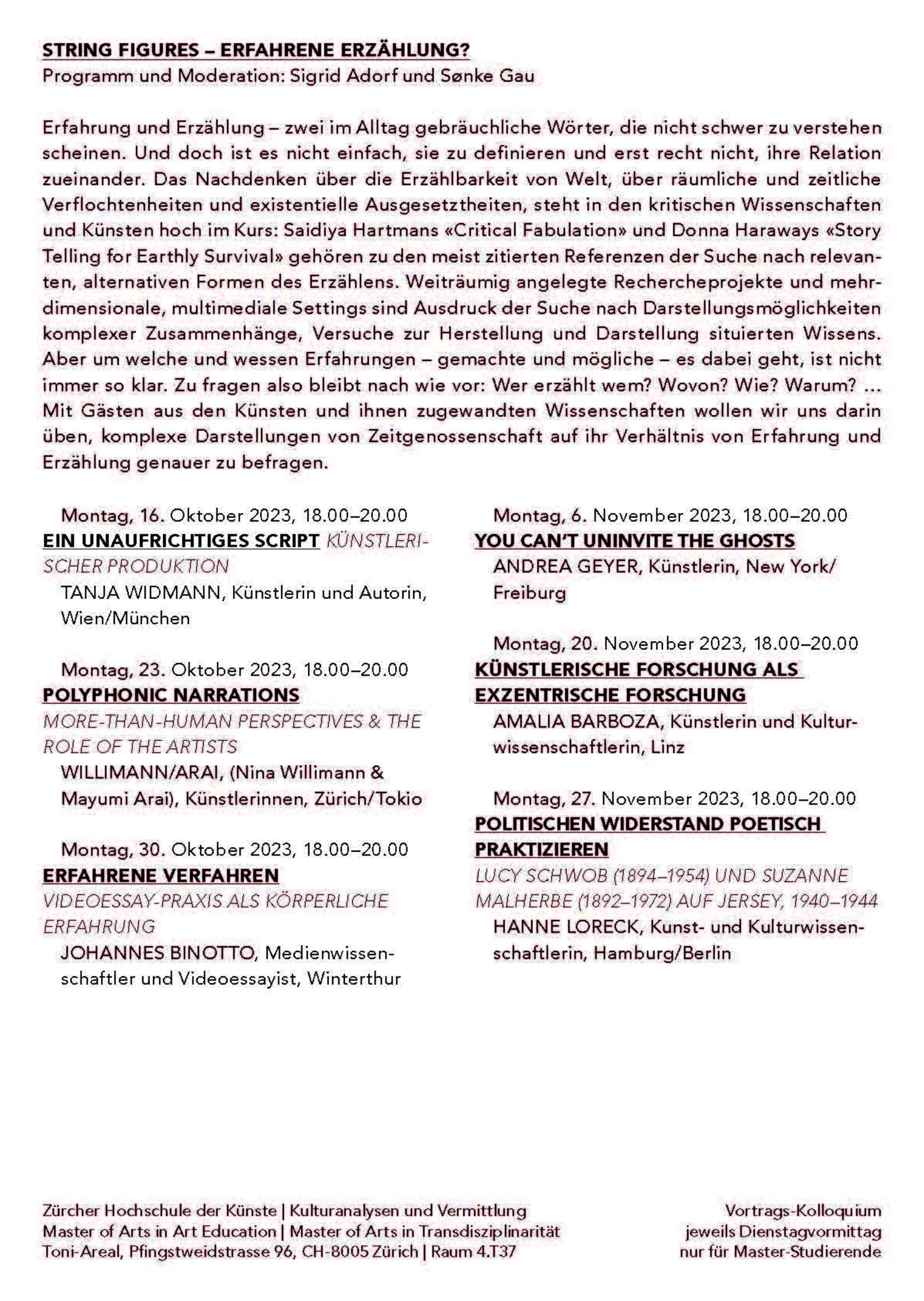 Antoine Chessex, wissenschaftlicher Mitarbeiter am fsp-k, präsentierte seine Installation «Rustling Voices – A Sonic Inquiry» bei La Becque (27. Juni 2023) und im Kunstraum Walcheturm (03.–06. Juli 2023). Die Arbeit konzentriert sich auf die affektiven, relationalen und sozialen Dimensionen des Klangs und des Zuhörens sowie auf deren mögliche Interaktion mit visuellen Dokumenten und Texten. Sie versucht, die narrativen Qualitäten von rauschenden, menschlichen und nicht-menschlichen Stimmen und deren Potenzial zur Entfaltung performativer Artikulationen aufzuzeigen.