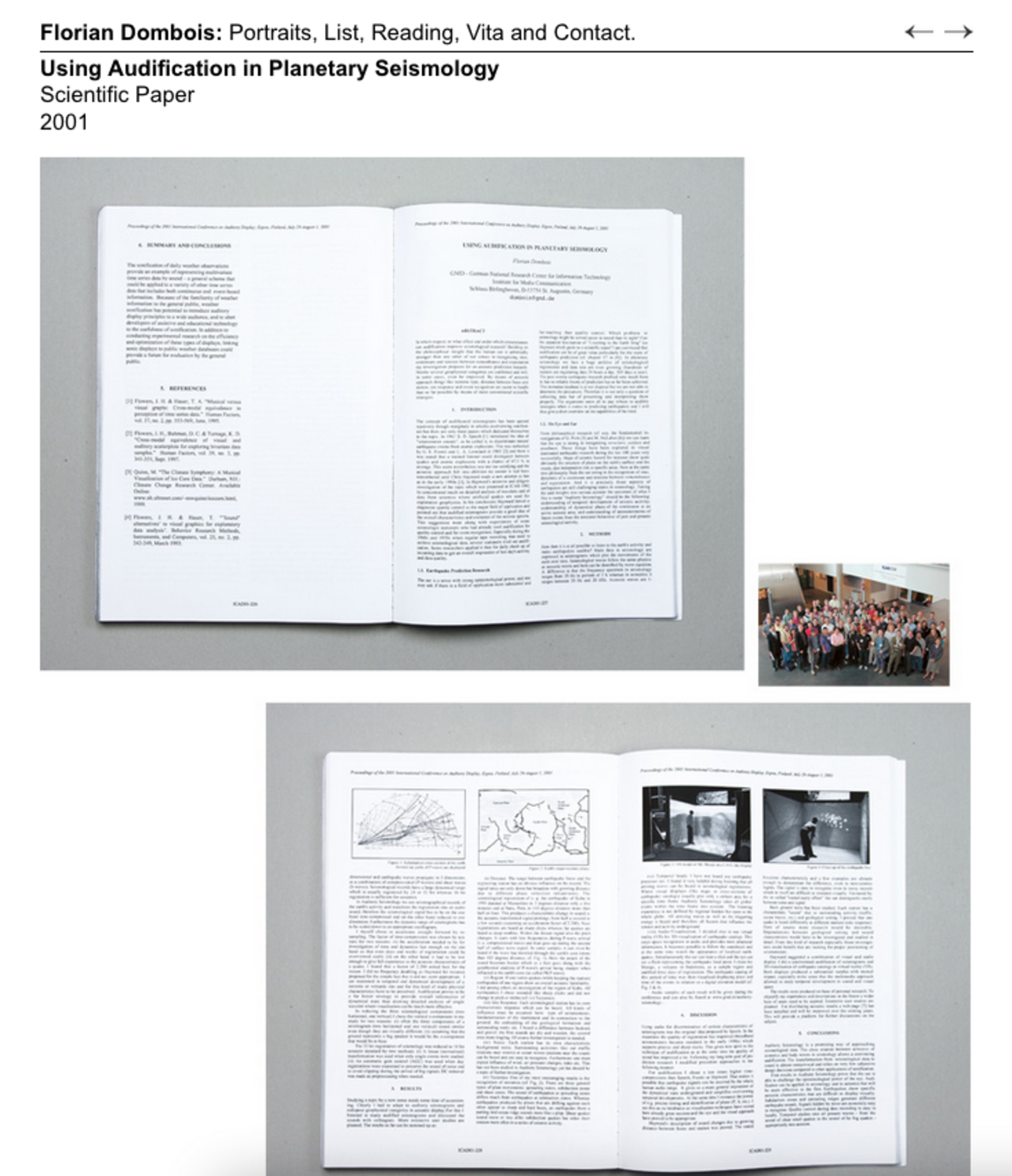 • Florian Dombois, Using Audification in Planetary Seismology, 2001Florian Dombois, Using Audification in Planetary Seismology, 2001