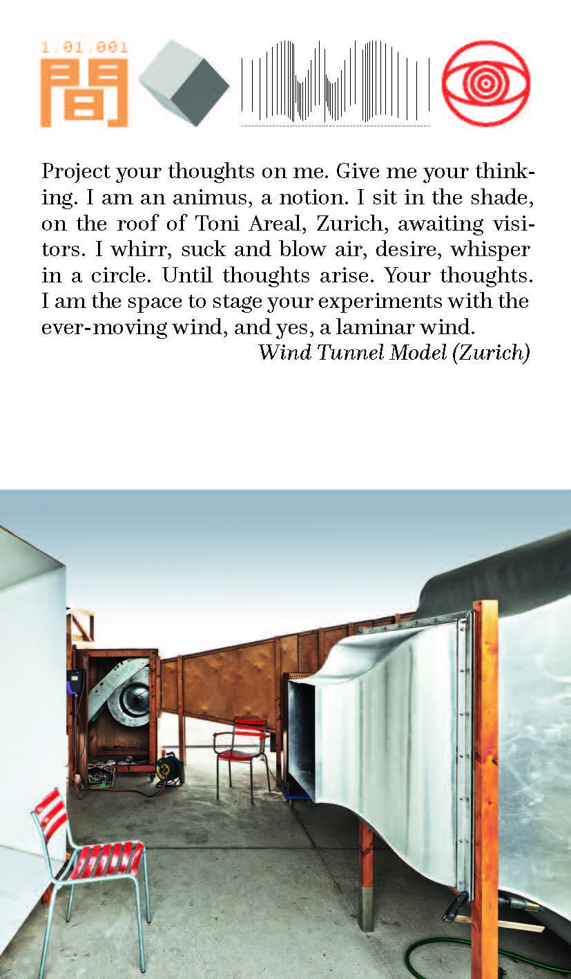 Wo ist der Wind, wenn er nicht weht? In dem neuen Buch The Wind Tunnel Model schlägt der Künstler Florian Dombois alternative Formen der Interaktion zwischen den Disziplinen vor: zwischen den Künsten, aber auch zwischen Künsten und Wissenschaften. Statt ein Problem oder ein Thema zu definieren, zu dem sich die jeweiligen Vertreter unterschiedlicher Richtungen zusammenfinden, gründete Dombois ein Windkanal-Labor mit leerer Mitte. Eine Architektur, die uns ihren Rücken zukehrt und ein nicht Sichtbares formt, ein Modell zweiter Ordnung, dabei verstörend konkret.