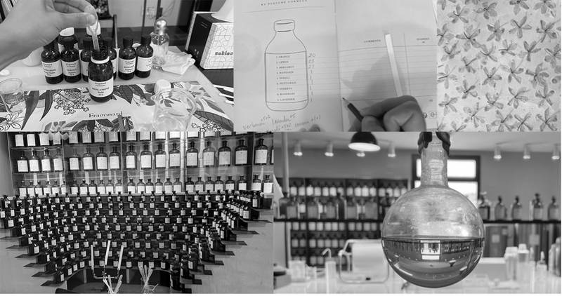 Next, I visited 11 perfume shops, asking myself and others: "Is there a perfume made from dandelions?", "Do you know the smell of dandelions, and have you tried using it in your perfume?", and "What do you think about the smell?" Most people laughed at me when I asked these questions and gave me interesting replies such as "It's not a flower you can smell", "Why do you want to know this?", "People like having an exceptional perfume product, so common plants like dandelions, you wouldn't want", and "There are so many raw materials we have to work with, about 4000 raw materials, pissenlit [dandelions in French]... not yet, but it's interesting". I collected all the voices and found two perfumers who were interested in my project and willing to investigate the scent of dandelions or create a space where we could get a sense of their smell.