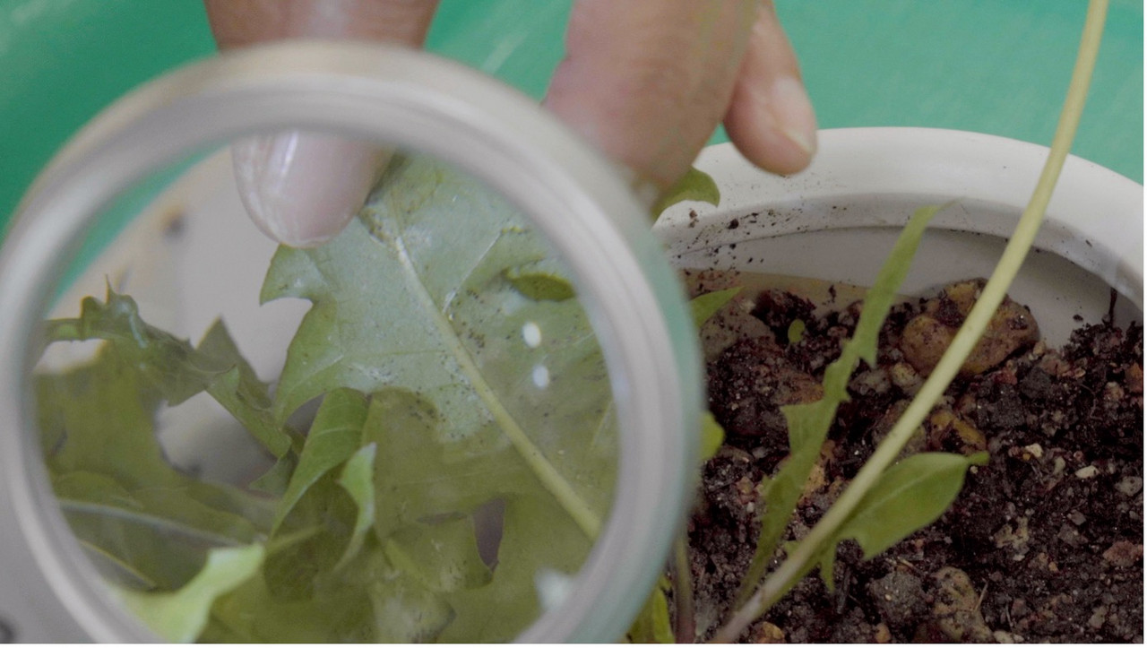 In South Korea, I visited a plant hospital run by Goyang Special City Agriculture Technology Center as a public service, which had launched in September 2024. I contacted and met with plant hospital doctors Hee-Kyung Yang and Ji-Seop Kim, who established the plant hospital to raise awareness of companion plants, accompanied by a potted dandelion, which I asked them to diagnose. Dr Yang carefully looked at the whole body of the dandelion, even revealing the roots to check their health and condition and then re-potting the plant. Using a magnifying glass and microscope, she pointed out various issues with the leaves (Figure 8), saying: