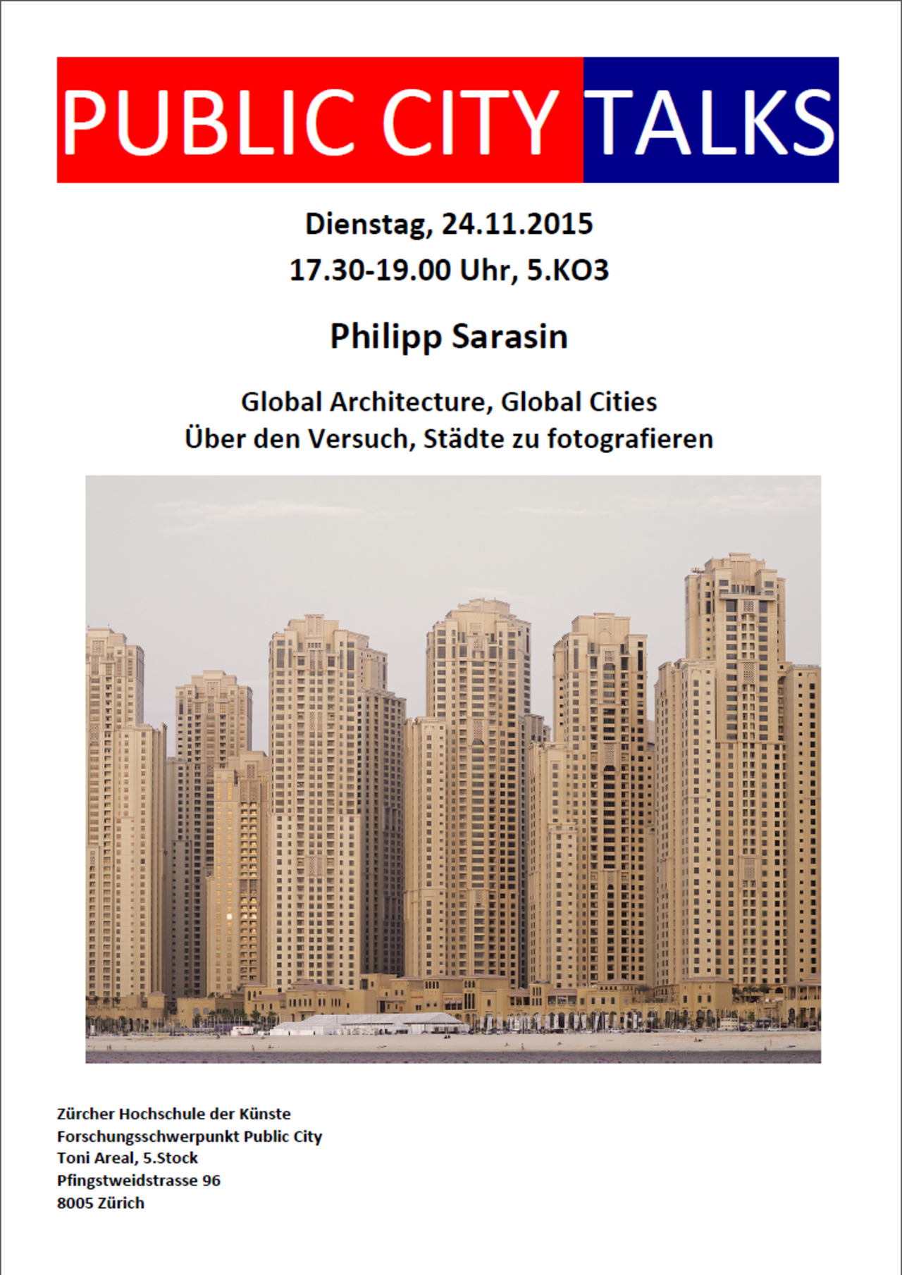 Philipp Sarasin, Historiker in Zürich, fotografiert seit Jahren in Grossstädten und Megacities, zuletzt in Bangkok, Shanghai und Beijing. Er referiert über sein laufendes Projekt «global architecture», erläutert anhand von Bildbeispielen sein Vorgehen und seine fotografische Konzeption zwischen dokumentarischer Arbeit und künstlerischem Anspruch.