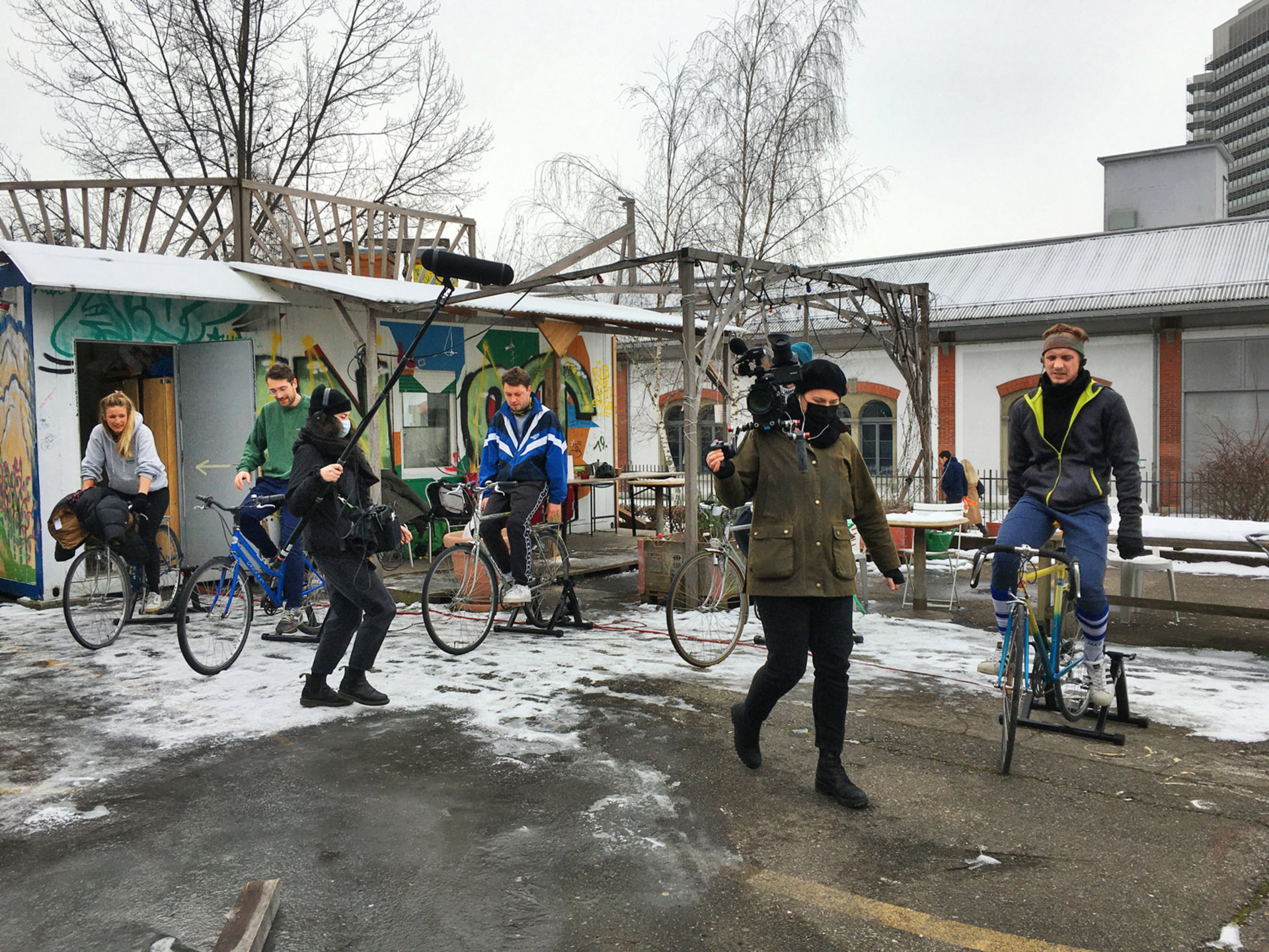 Verantwortung hat auch Tobias Luchsinger übernommen. Er studiert im letzten Semester Film im Praxisfeld Realisation Dokumentarfilm und schliesst 2022 seinen Master ab. Im klimaneutral produzierten Dokumentarfilm «Der Wert der Dinge» porträtiert er drei Zürcher:innen, die in der Bau-, Lebensmittel- und Textilindustrie neue, nachhaltige Alternativen schaffen. Die Produktion wird von einer Kamerafrau begleitet, welche die Entstehung filmisch festhält. Ihre Aufnahmen sind Teil des Films und ermöglichen es dem Publikum, in die Welt des nachhaltigen Filmens einzutauchen. Den Strom am Set haben die Filmemacher:innen mit Muskelkraft und Solarenergie gleich selbst produziert. «Ist der Strom aufgebraucht, gibt es eine Zwangspause, bis die Batterien wieder aufgeladen sind», so Luchsinger. «Ein Abenteuer für die ganze Crew, das im Film den dramaturgischen Spannungsbogen bilden wird.» Die Erfahrung, selbst in die Pedalen zu treten, hat ihnen aufgezeigt, wie viel Kraft und Zeit nötig ist, um Energie zu erzeugen. Leon Schwitter und Tobias Luchsinger sind sich einig: «Nachhaltiges Agieren bereut man nicht. Der Mehrwert für Film und Umwelt überwiegt.»
