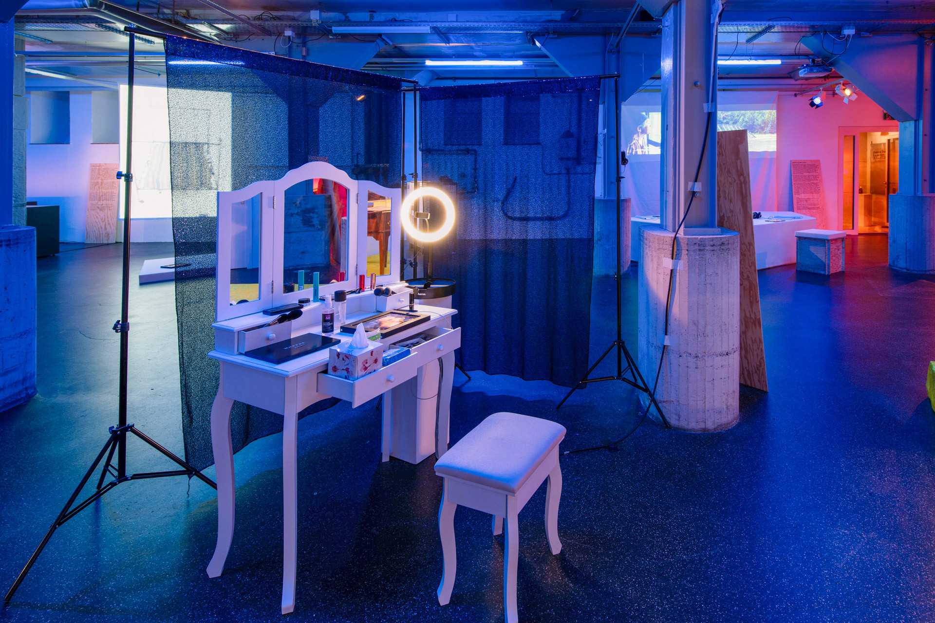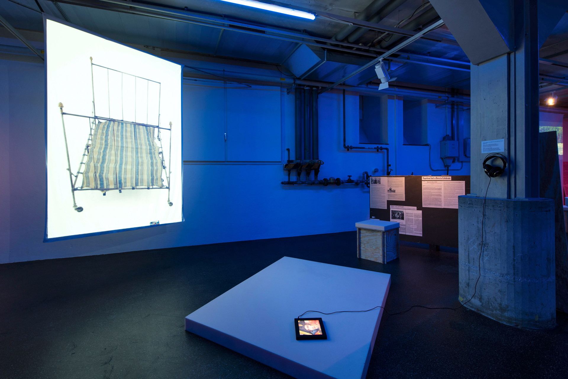 «Zones of Potential Encounters. Eine multiperspektivische Ausstellung mit Objekten aus der Sammlung der Stiftung für Kunst, Kultur und Geschichte SKKG» im oxyd lud das Publikum im Juli in eine vergegenwärtigte Vergangenheit ein. Diese potenzielle Begegnungszone, in kräftiger königsblauer bis pinker Farbe ausgeleuchtet, brachte sechs ausgewählte Objekte zum Wirken: den Nachlass einer Sexarbeiterin (ca. 1945 bis 1950), einen Sportanzug aus dem «Bund Deutscher Mädel» (1930 bis 1945), das Porträt «Mein Vater» von Hedi Zuber (1993), einen Schminktisch aus dem Besitz von Sarah Bernhardt (1900), die Sonnenbrille eines Crew-Mitglieds des Vorführungsteams des B-29-Bombers «Enola Gay» der U.S. Air Force (ca. 1946 bis 1950) und ein Feldbett aus dem Besitz Napoleon Bonapartes, das aus konservatorischen Gründen nur virtueller Bestandteil der Ausstellung werden konnte.