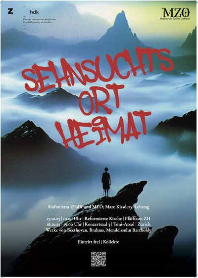 Die Sinfonietta ZHdK präsentierte das Konzert Sehnsuchtsort Heimat. Im Rahmen dieses Projekts kamen junge Musikerinnen und Musiker aus dem PreCollege der ZHdK zusammen mit Schülerinnen und Schüler der Musikschule Zürcher Oberland sowie Bachelor- und Masterstudierenden und gestalteten gemeinsam den Abend.