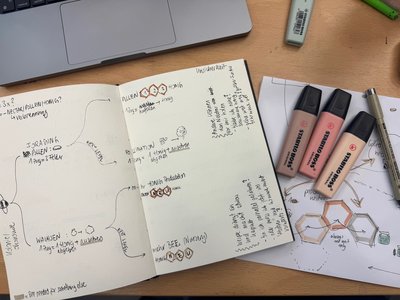 Das Spiel nutzt die Welt der Bienen als erzählerische Analogie für Struktur, Führung und Strategie. Dieser Rahmen hilft dabei, Fragen der Unternehmensorganisation anschaulich zu vermitteln und in eine nachvollziehbare Spielerfahrung zu übersetzen. Durch eigene Recherchen, die Auseinandersetzung mit vergleichbaren Brettspielen sowie intensiven Playtests wurde das Konzept in mehreren Iterationen verfeinert. Eigens gestaltete Spielmaterialien, deren reduzierte Farbpalette dem Prototyp einen klaren und wiedererkennbaren Stil verleiht, tragen zum Spielerlebnis bei.