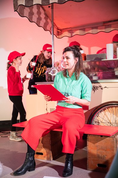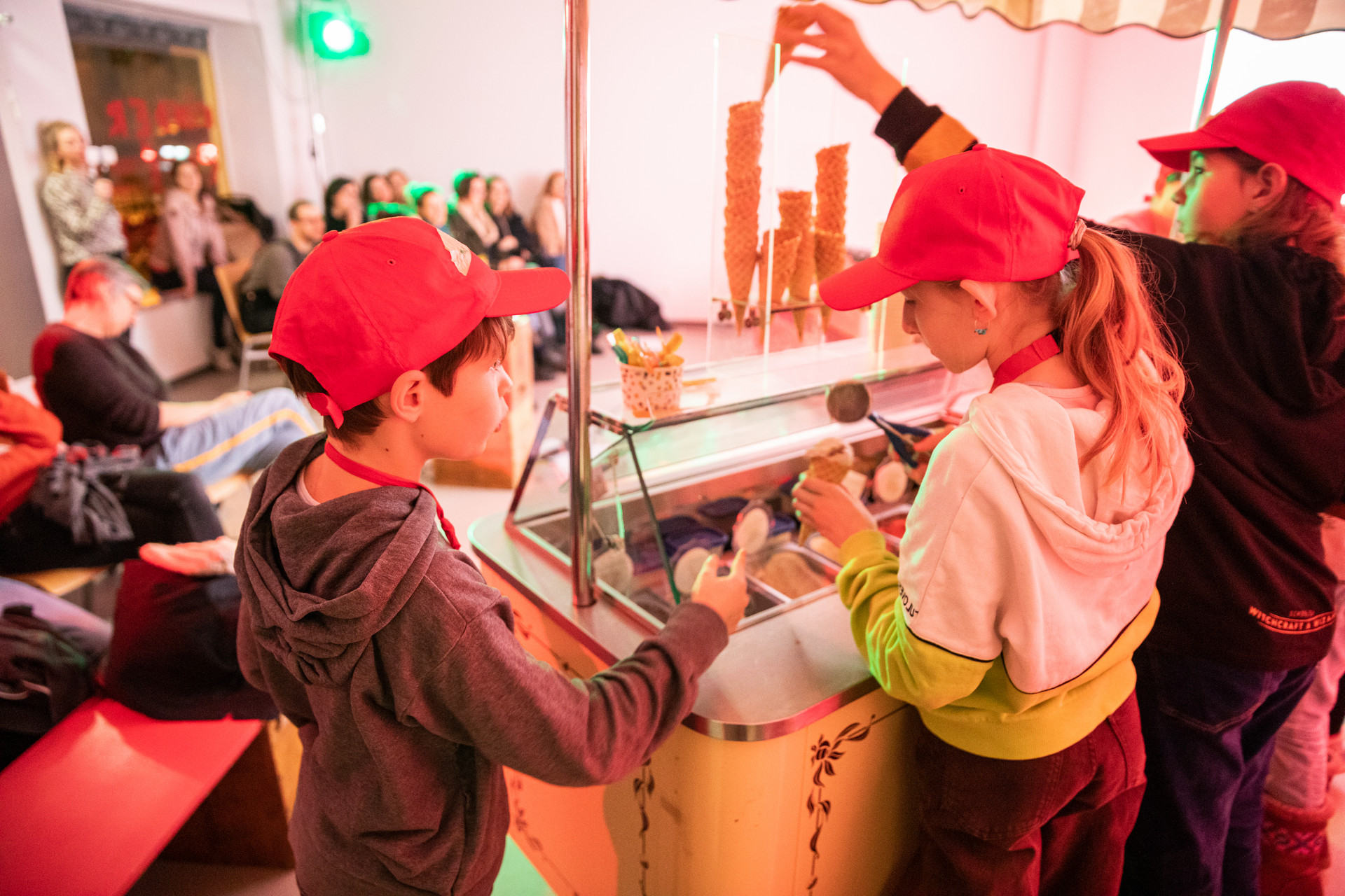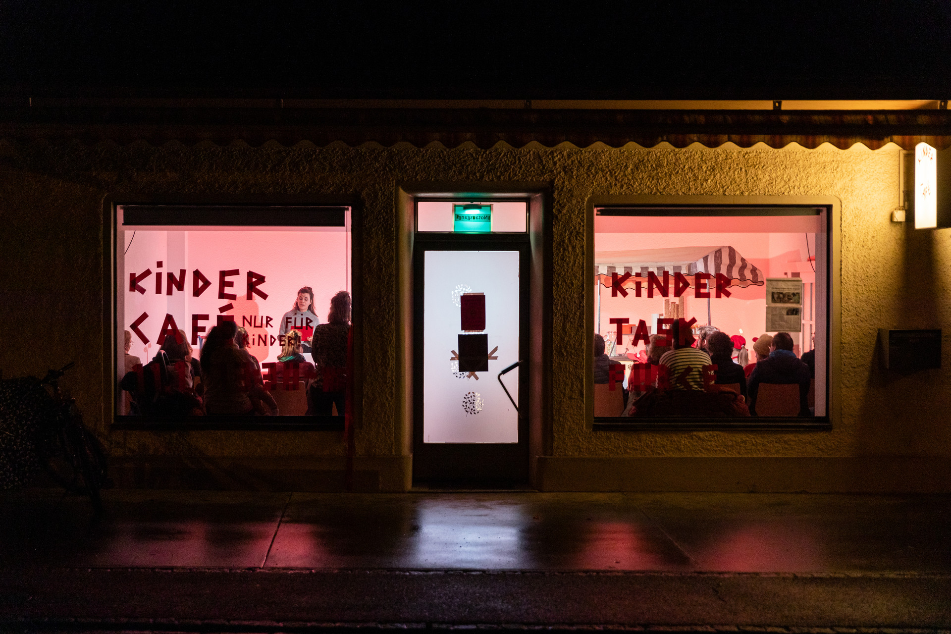 Im Kinder-Café wird die Utopie der Kinder ausgetestet: Der ehemalige Tante-Emma-Laden verwandelt sich in diesen Ort der unmöglichen Möglichkeiten. Ein Kinder-Café nur für Kinder. Ein autonomer Raum mit gratis Glace, in welchem die Kinder selber aushandeln, wie sie sich hier versammeln wollen.