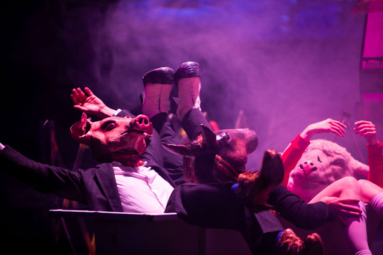 Farm der Tiere ist eine erschreckend aktuelle Geschichte über Machtgier und die Entstehungsmechanismen des Totalitarismus. Das Werk ist ein Gesamtkunstwerk, das starke Bühnenkunst, Film, vielschichtiges Sounddesign und eine ausgefeilte visuelle Welt vereint.