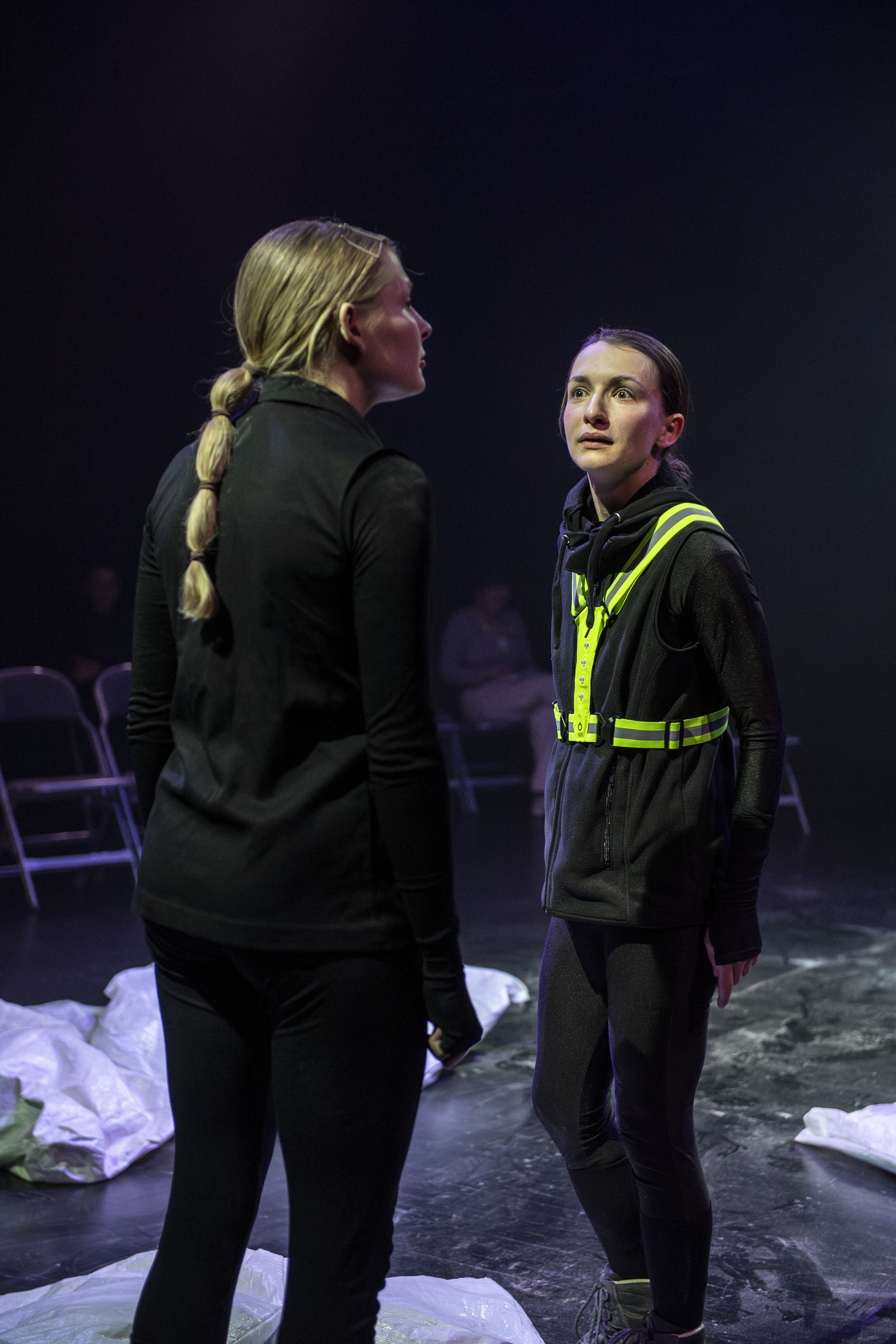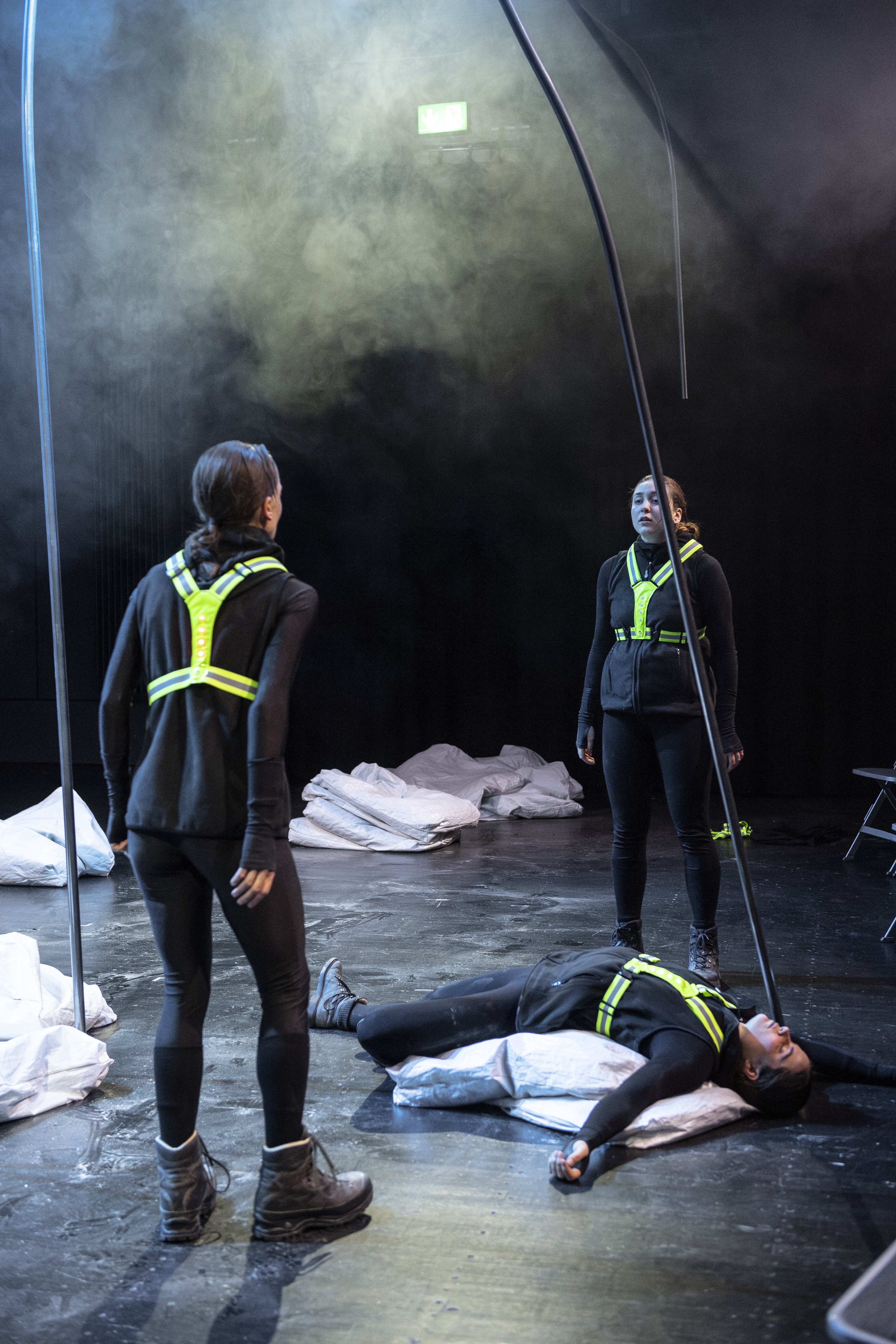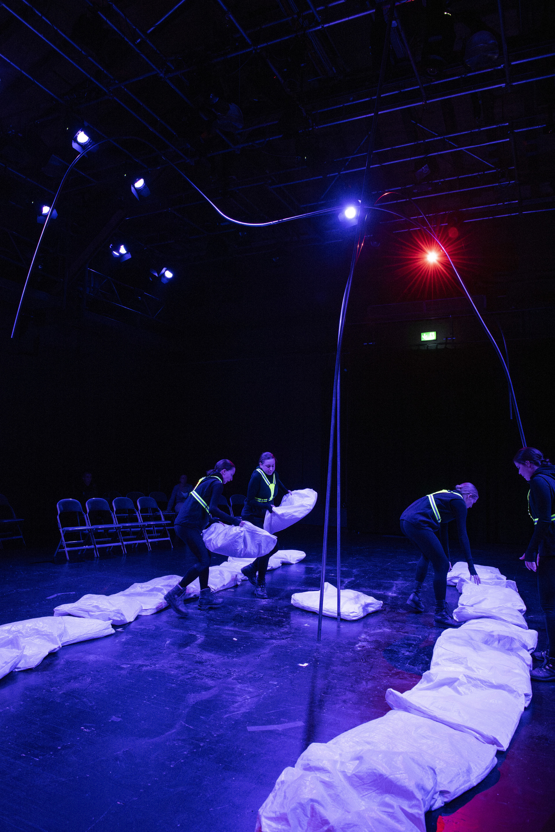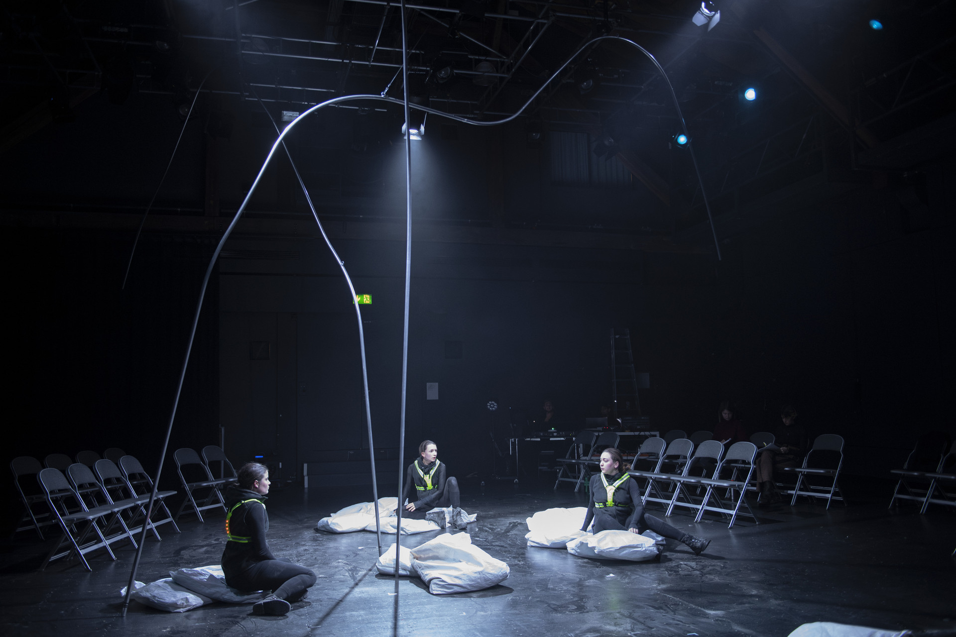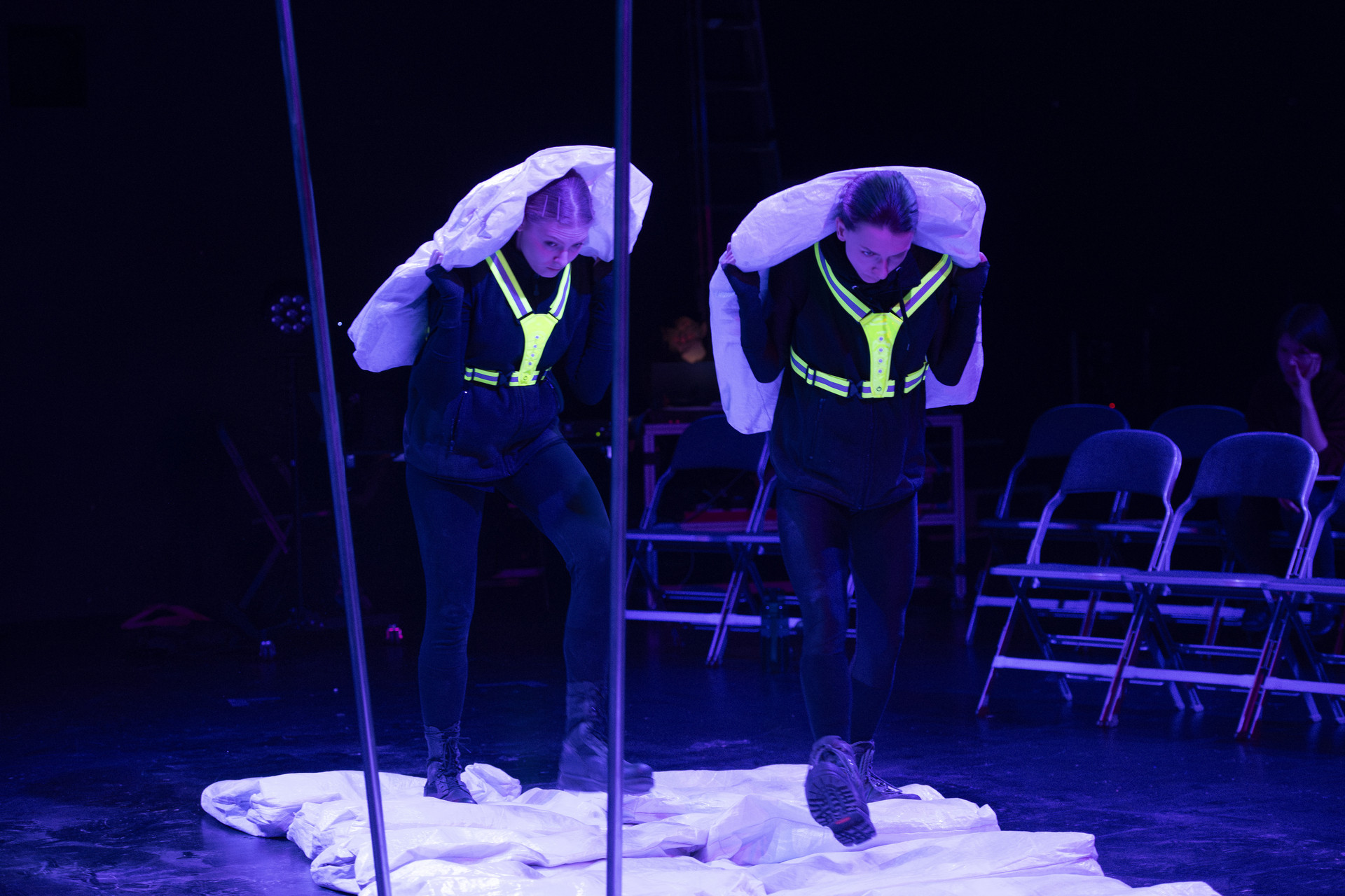 In unserer Inszenierung sind die Ereignisse aus dem Stück längst vergangen. Der Schneesturm beschwört die Arbeiter und den Ingenieur wieder herauf. Können sie sich jetzt einander verletzlich zeigen, in ihrer Schuld und in ihrer Sehnsucht?