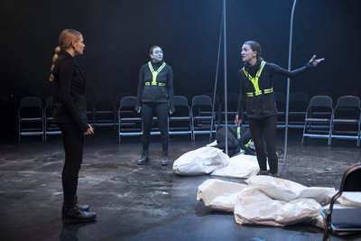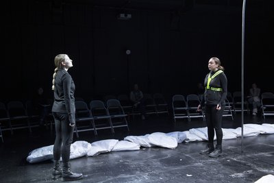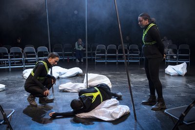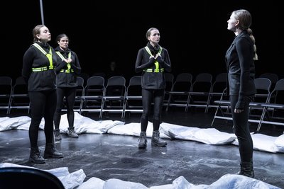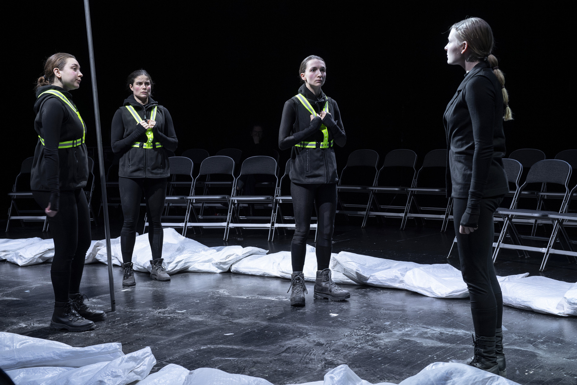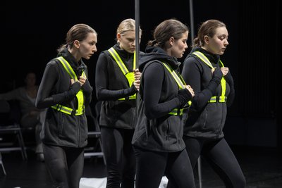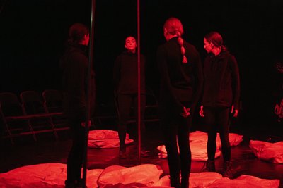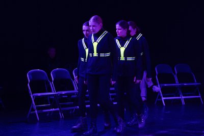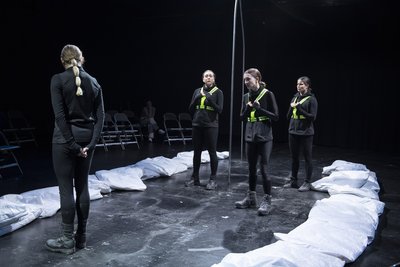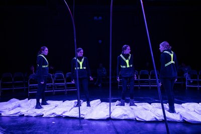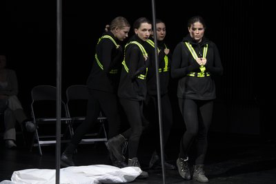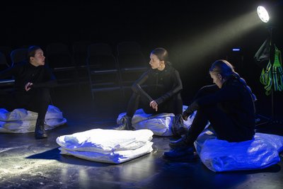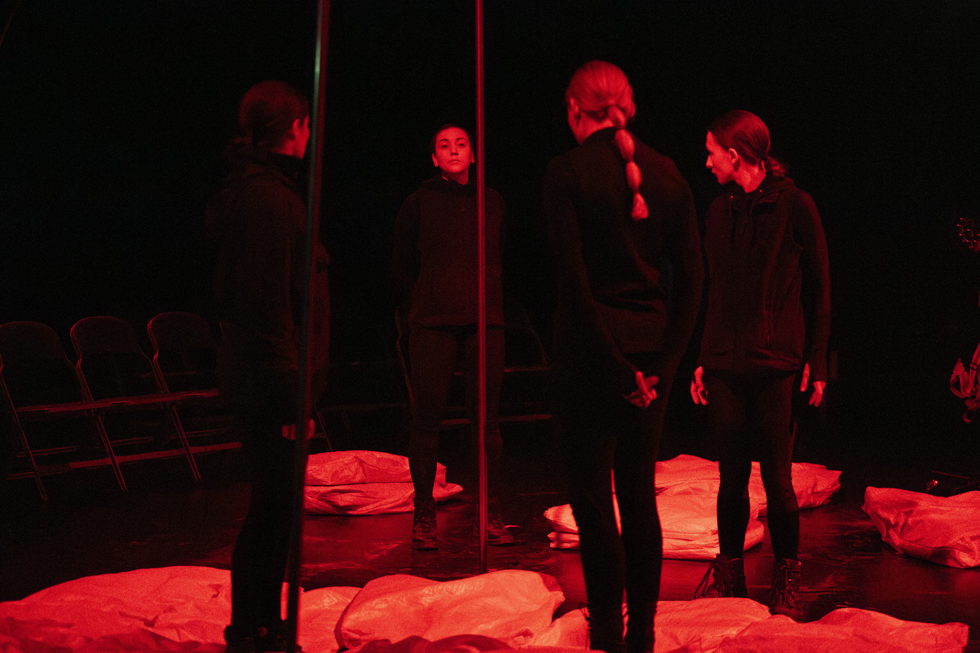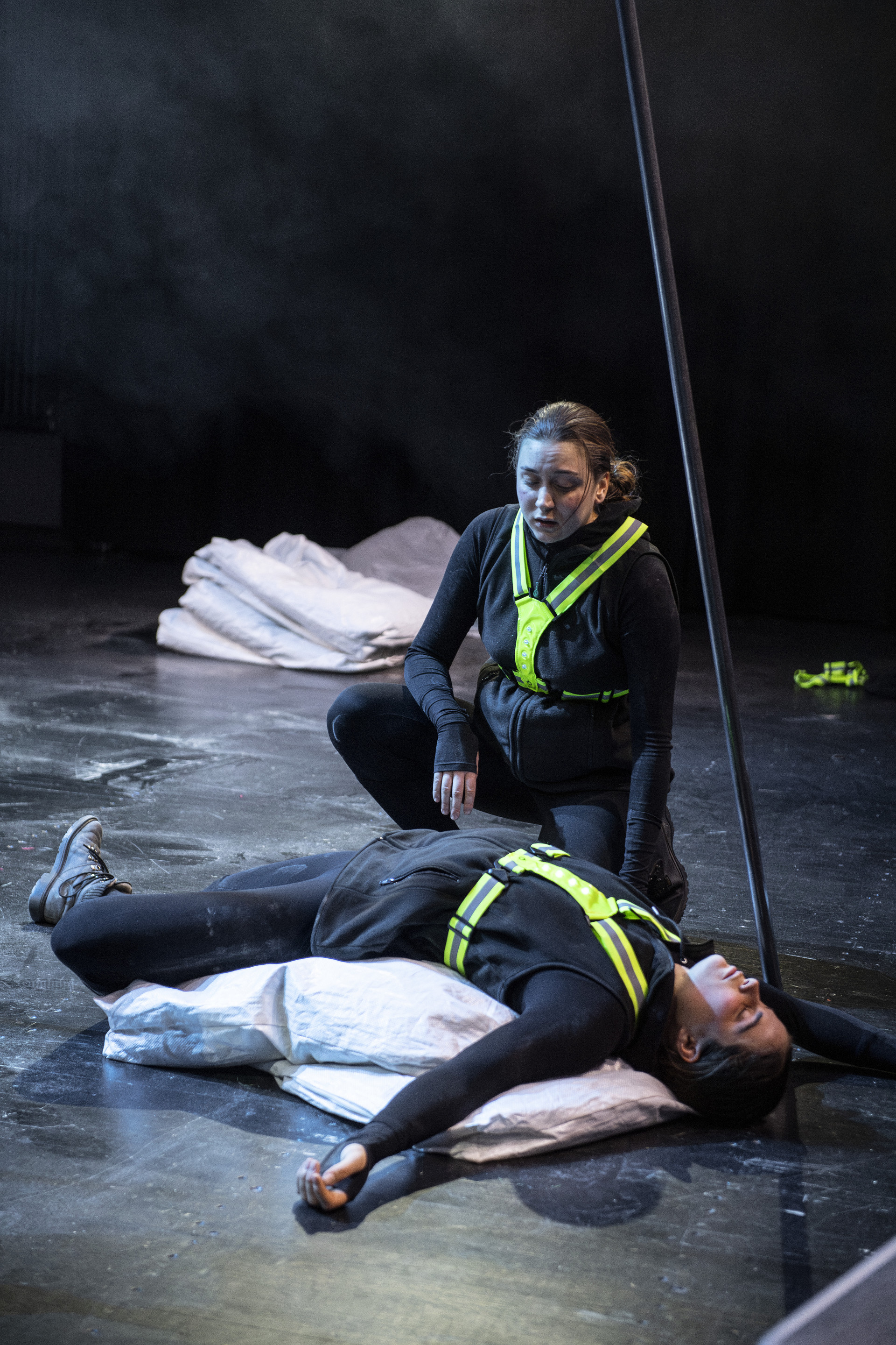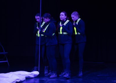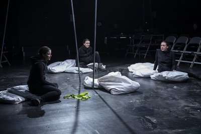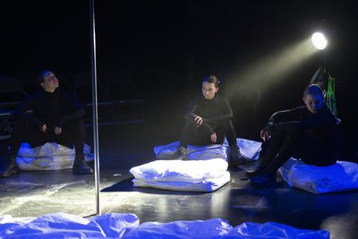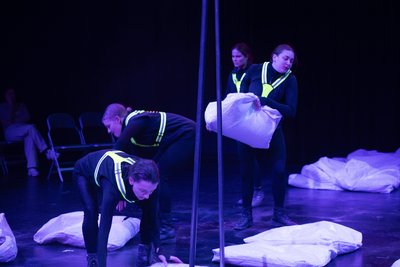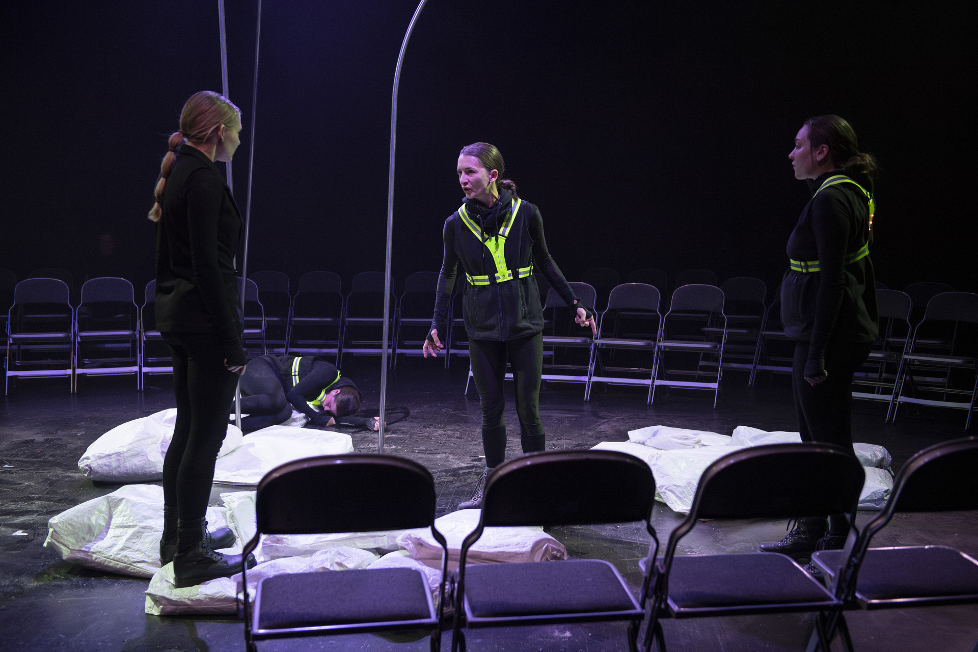 In unserer Inszenierung sind die Ereignisse aus dem Stück längst vergangen. Der Schneesturm beschwört die Arbeiter und den Ingenieur wieder herauf. Können sie sich jetzt einander verletzlich zeigen, in ihrer Schuld und in ihrer Sehnsucht?