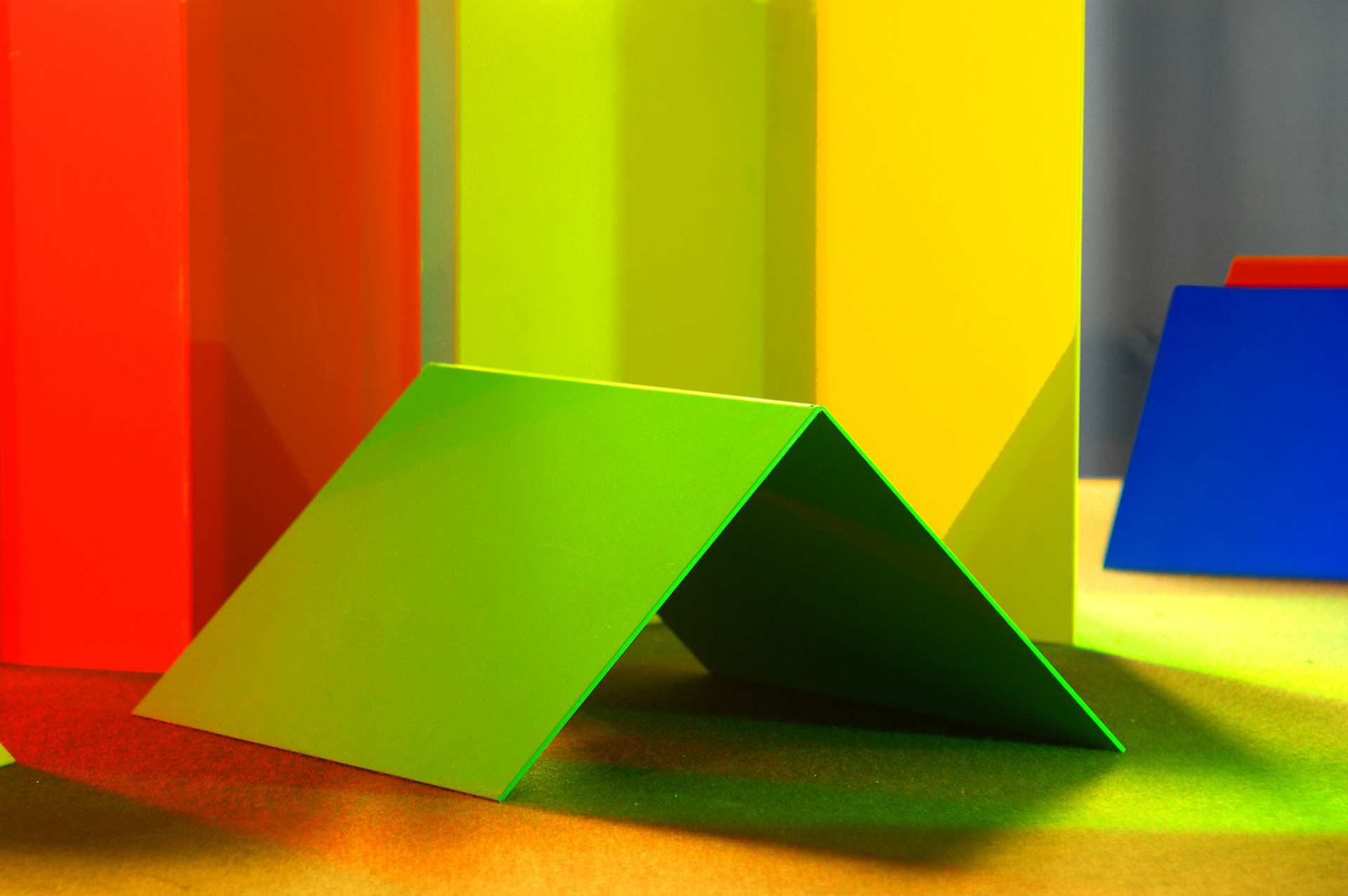 Farbtonverschiebungen und Farbtonverstärkungen bis hin zu selbstleuchtenden Flächenwirkungen sowie Helligkeitsveränderungen und Vergrauungen farbiger Oberflächen versetzen uns immer wieder in Erstaunen. Wie zufällig lassen sich auch andere Phänomene wie farbige und eingefärbte Schatten entdecken.