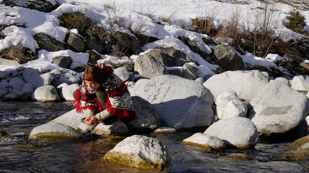 home of the waterbird::mujer del agua is an embodied exploration delving into the realm of shamanic memories and their interplay with the physical plane of Middle World where dreams are materialised into form. Through a performative ritual, the work experiences a rebirth of its spiritual process into the exhibition merging the duality of the artist archetype with the figure of the shaman, as an attempt to experience the zero state of life. Tracing back to the genesis of time, we are in the space between life and death, awakening to the now, a space where unity and duality merge to birth a new dimension. In the shamanic rite of gratitude the water spirit emerges from the womb of the waterbird, genesis of all life.