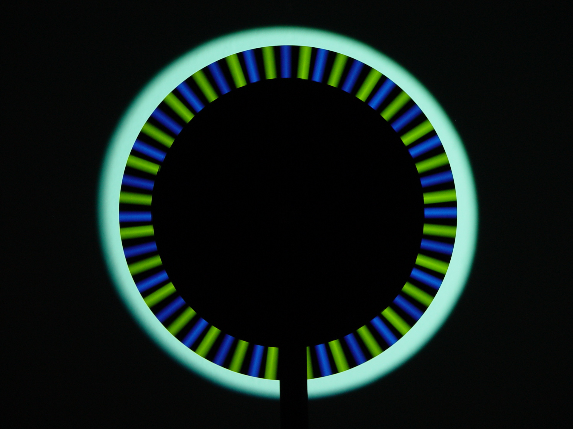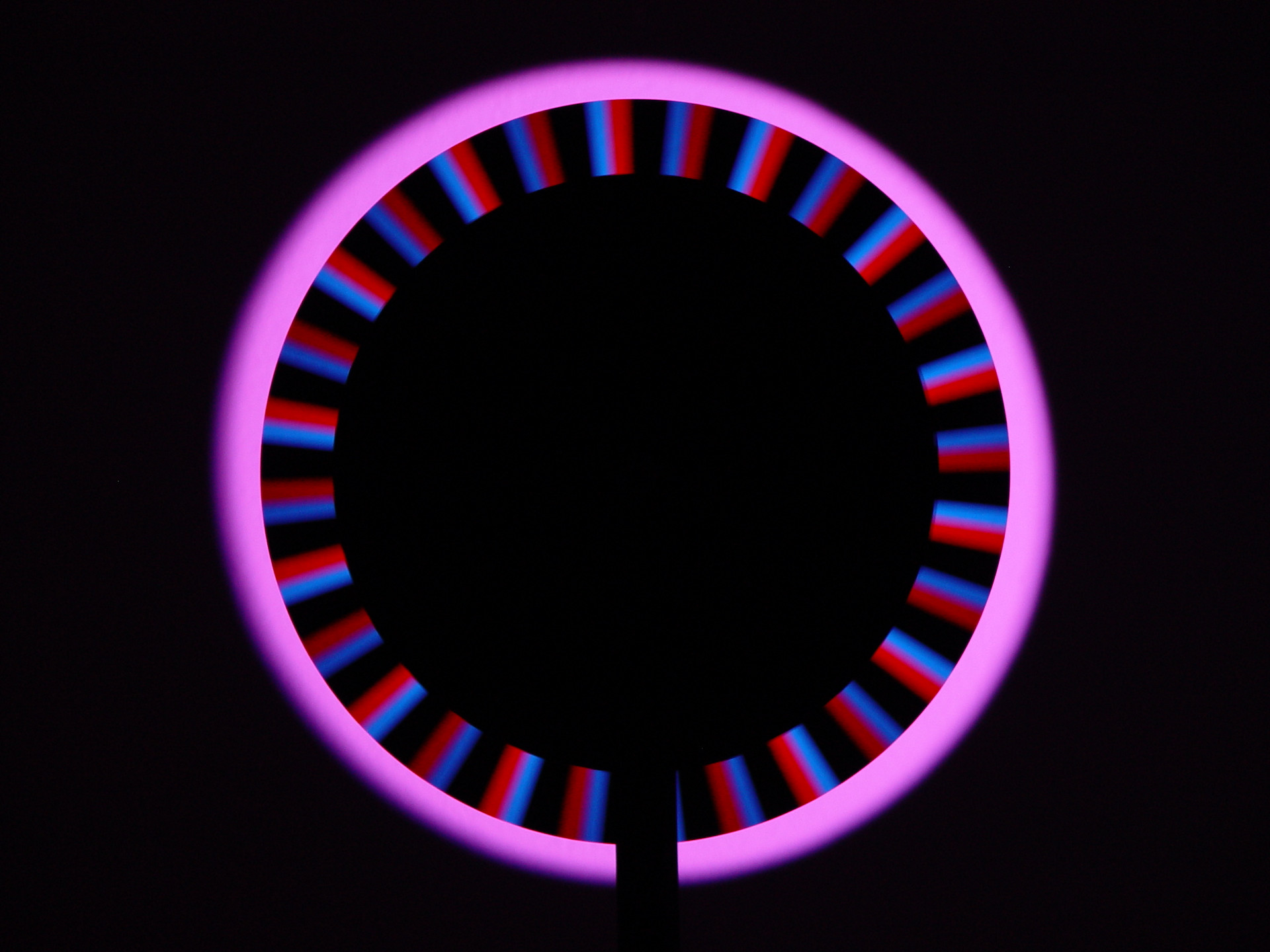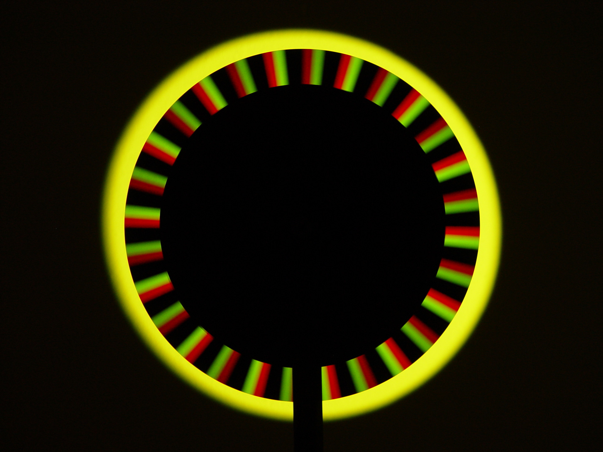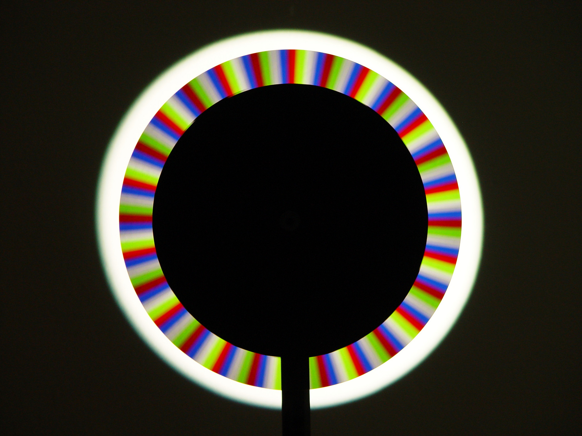 Um die einzelnen Farben sichtbar zu machen, muss die Drehgeschwindigkeit der stroboskopischen Scheibe, die vom Betrachter mithilfe eines Reglers exakt eingestellt werden kann, der Frequenz der RGB-Impulse des Beamerlichts entsprechen oder ein Vielfaches davon betragen. Dabei kommt es nicht nur zu einer qualitativen Auftrennung des Lichts in seine Primärfarben, sondern auch zu einer quantitativen Auftrennung. Man sieht folglich nicht nur, aus welchen Grundfarben eine Farbe zusammengesetzt ist, sondern auch wie viel Rot-, Grün- oder Blau-Anteile eine Farbe hat, was sich direkt an der Helligkeit der jeweiligen Grundfarben ablesen lässt.