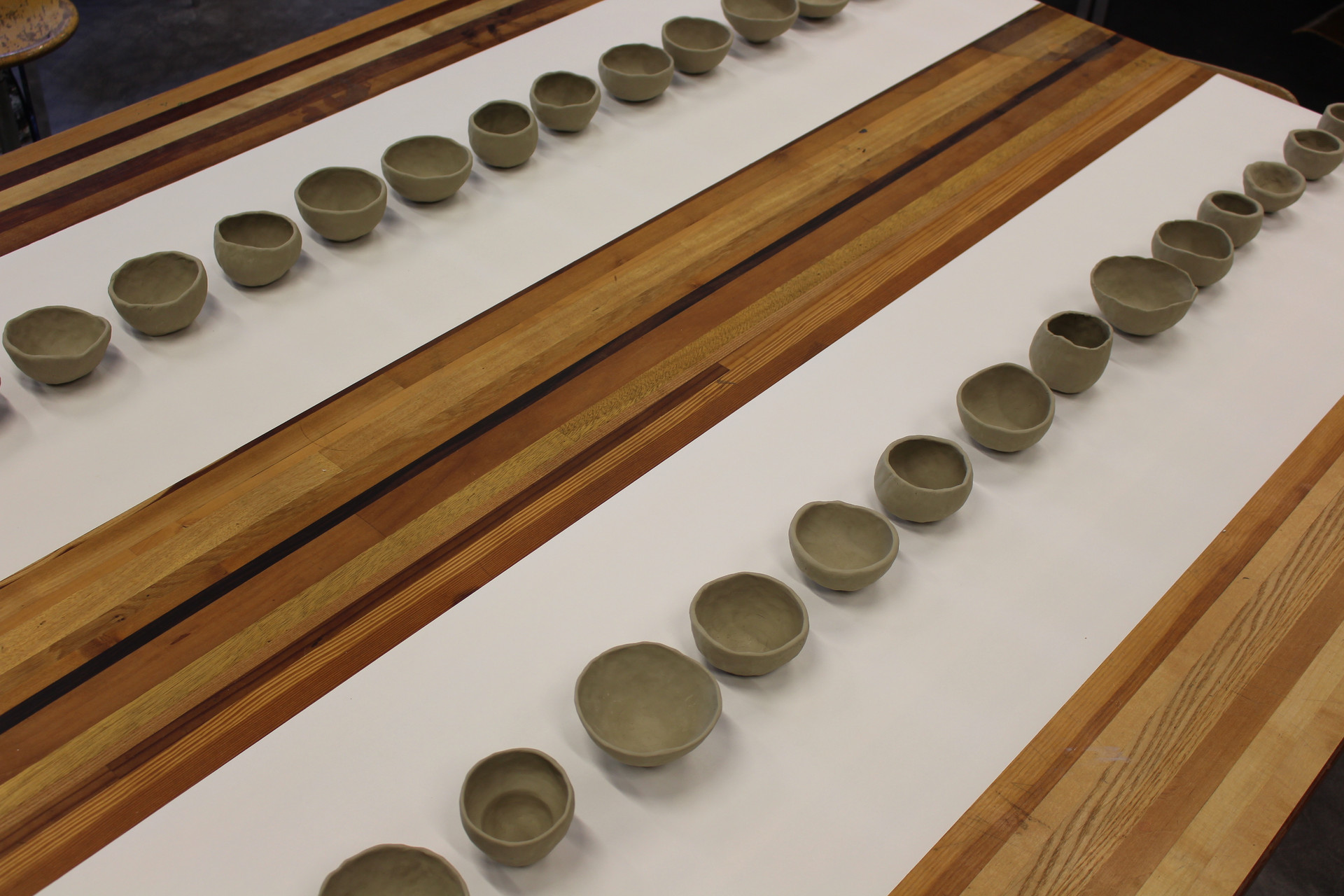 Durch das strikte Wiederholen erreiche und überschreite ich Grenzen, wobei neue Wege und künstlerisch Unerwartetes entstehen. Diesen Kipp-Punkt und die damit verbundene Veränderung beim Produkt, wie auch bei mir selbst, wollte ich erzielen und austesten. So habe ich bei der Apfelernte geholfen, versuchte «Lorem Ipsum» fehlerfrei auf der Schreibmaschine abzutippen und habe jeden Tag eine Daumenschale modelliert. Schnell hatte ich eine Grenze erreicht.