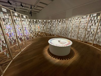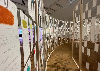In dieser interaktiven Installation werden Lebenseinblicke von verschiedenen Personen gezeigt. Auf jeder Karte sind die Antworten auf die Fragen: Was ist deine Lieblingsfarbe? Was willst du lernen? Wovor hast du Angst? Was hat dir in den letzten Tagen Freude bereitet?