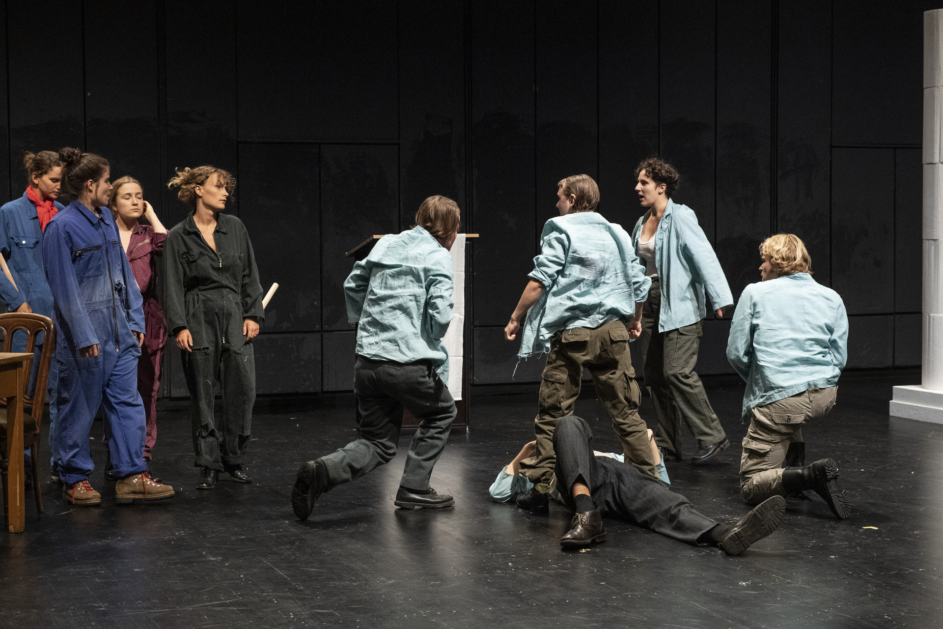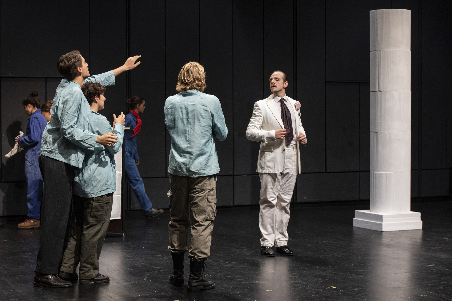 Arbeiter*innen taumeln zwischen den Feiernden .
