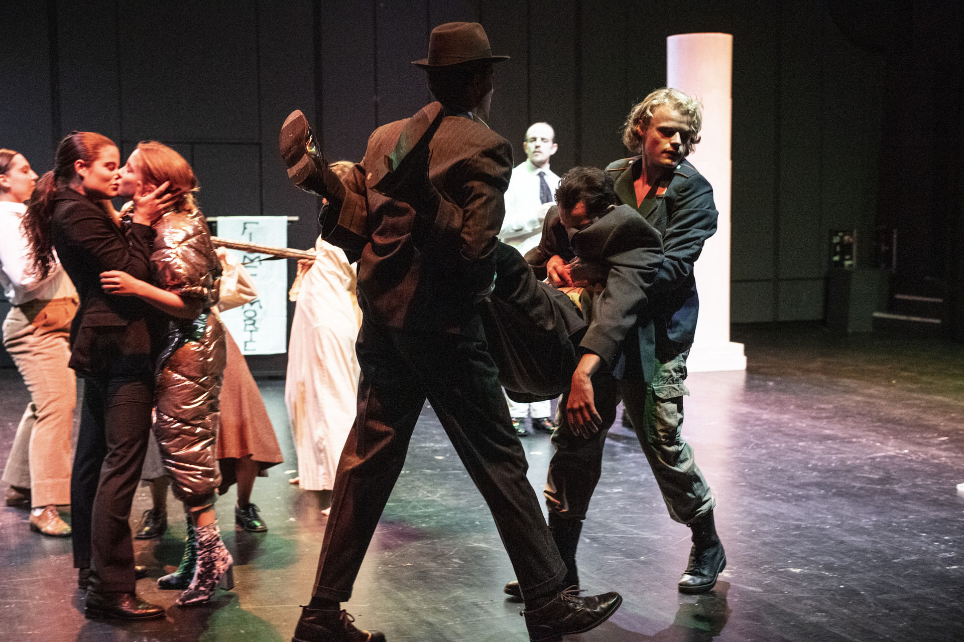 Alles rattert durch die Strassen von Fiume als geschichtliches Zwischenspiel: Was passiert, wenn alles herunterbricht, wenn die Katastrophe schon passiert ist und die Widersprüche einen Punkt erreicht haben, an dem es kein Zurück mehr gibt? Was, wenn die liberale Ideologie einen unlösbaren Anschlagpunkt erreicht hat, der Moment für die Revolution schon vorbei und begleitet von Orgien und Schreien nach Leben und Liebe schon die nächste Katastrophe im schwarzen Hemd herbeimarschiert?