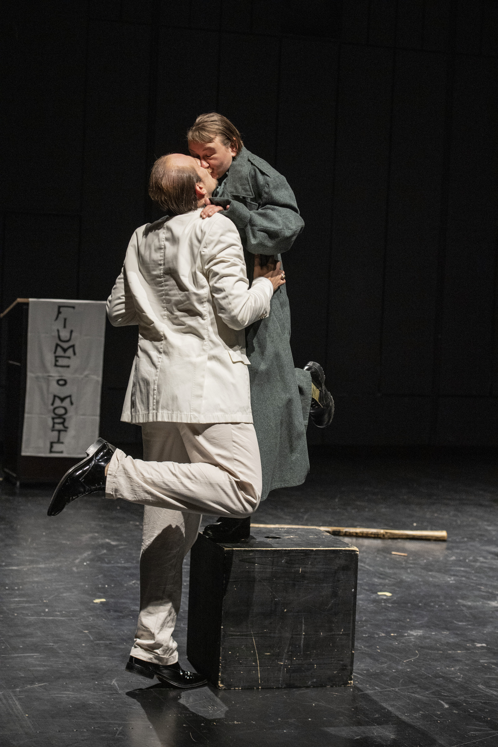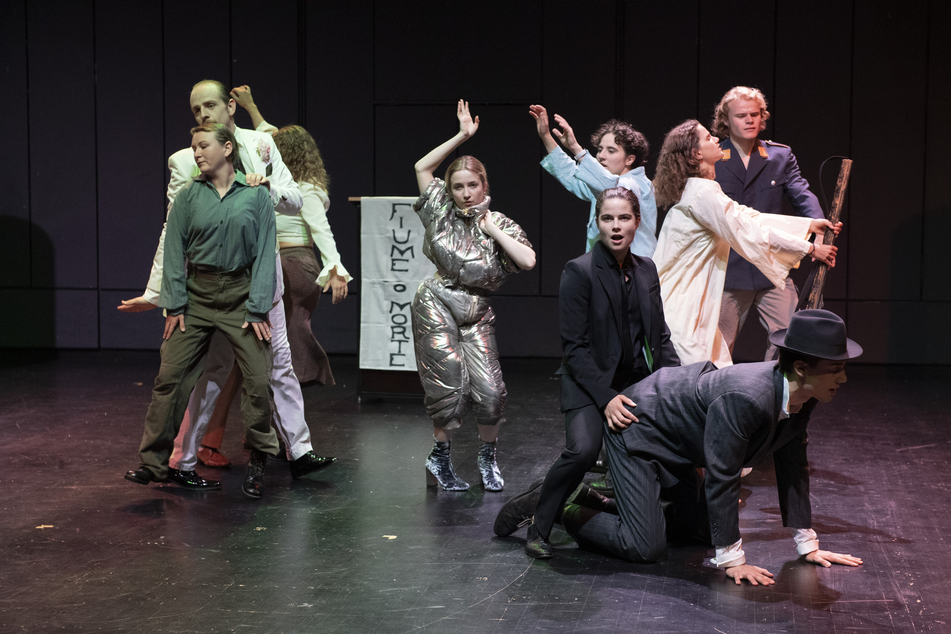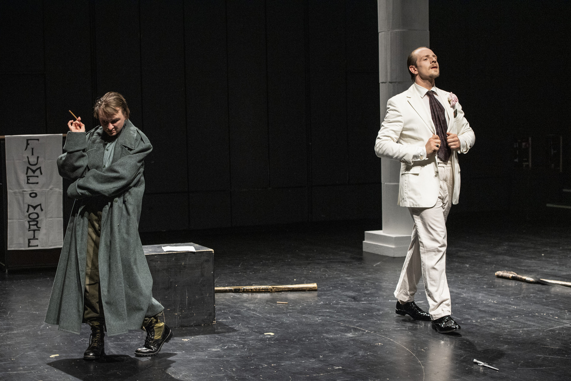 Das Theaterstück „Fiume“ behandelt die Besetzung der Stadt Fiume durch die Arditi, die Sturmtruppen der italienischen Armee, die desertierten und sich 1919 dem Dichter Gabriele D’Annunzio anschlossen.