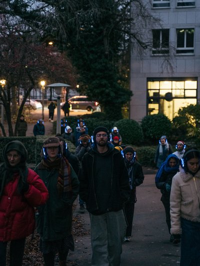 Triptrip entzog sich einer gradlinigen Erzählstruktur. Durch verstärkte Umgebungsgeräusche, fürsorglicher Begleitung und Geräuschkollagen erlebten die Teilnehmenden den Ort intensiver und verschoben.