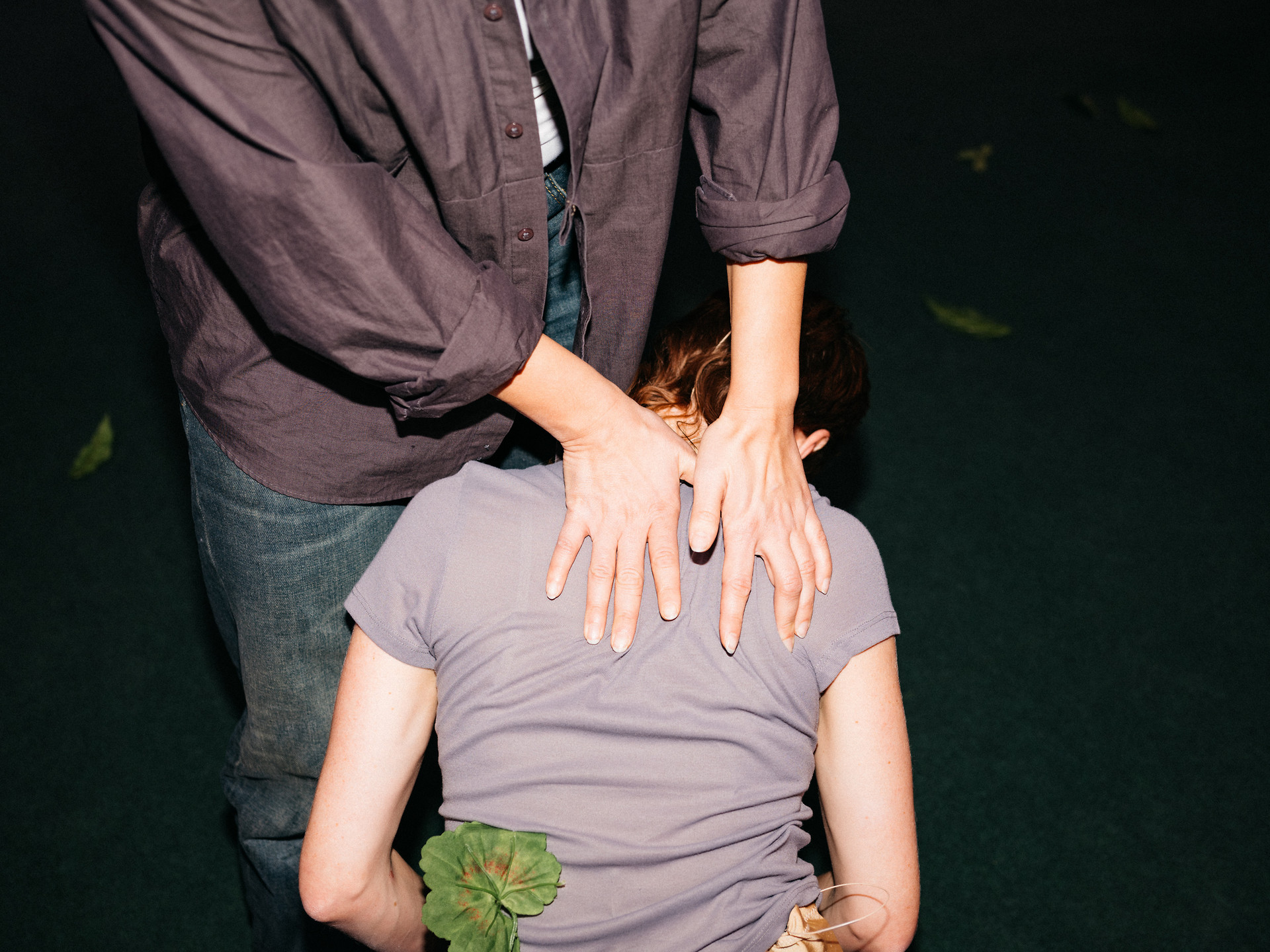 Sie kreisen umeinander. Ihre Hand berührt die andere, schiebt sich langsam auf ihren Arm, umfasst diesen, um sich zu halten, um sie festzuhalten. Ihr Griff festigt sich, ihre Finger drücken sich in das Fleisch. Dann zieht sie ihren Arm nach hinten, dreht sich ein und verdreht sie. Der Griff löst sich. Eine Hand wird ihr gereicht. Der Raum kreist mit ihnen, bewegt sie und wird von ihnen mitgerissen in immer weiteren Umkreis-ungen, um sie selbst, um uns und die Szenerie, die wir beobachten. Wir scheinen statisch und erscheinen ebenso sehr als Teil von allem, wie