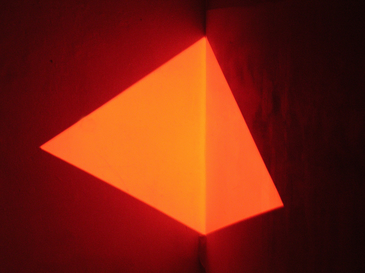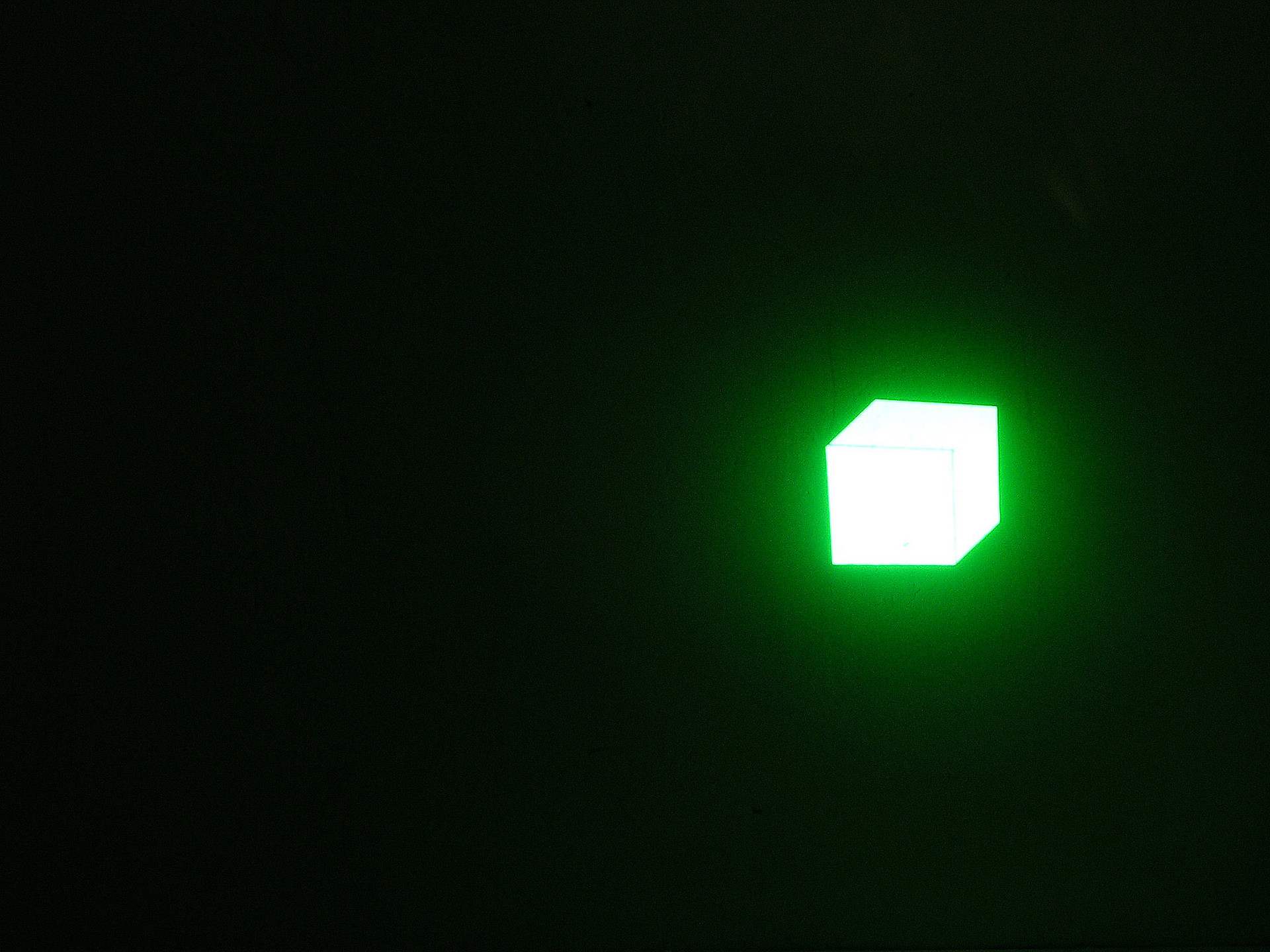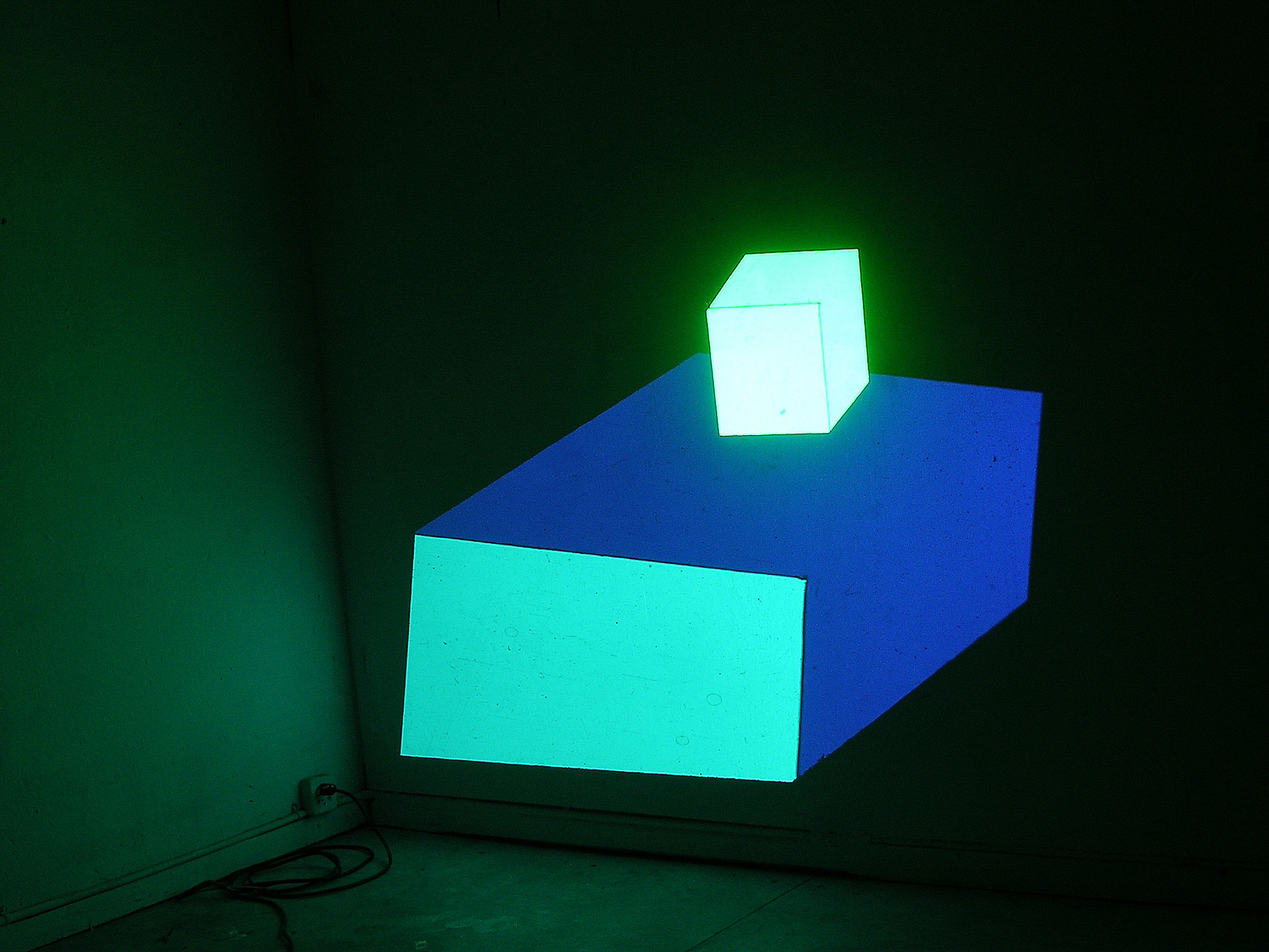 Die dem Projektor frontal zugewandte Seite der Wand reflektierte das Licht heller als die seitliche Wand. Dies führte zu einer räumlichen Wirkung der geometrischen Projektion. Um diesen Effekt noch zu verstärken, wurden Teile der Formen auf dem Dia mit einem Stück gleichfarbiger Folie überklebt, was zu einer Abdunkelung der projizierten Farbe führte.
