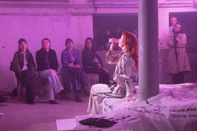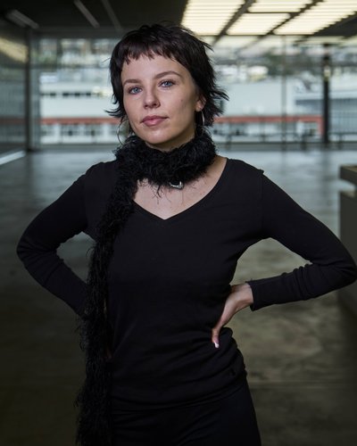Julia Im Obersteg (sie/ihr) (*1999 in Bern) lebt und arbeitet in Zürich. Seit 2021 studiert sie Szenischer Raum an der Zürcher Hochschule der Künste. In ihrer interdisziplinären, prozessorientierten Praxis entwirft sie szenische Räume und Kostümbilder für Theater, Performance und Videokunst. Mit einem bewussten Einsatz vielfältiger Materialien und Techniken gestaltet sie Arbeiten, die gesellschaftliche Strukturen sichtbar machen und zur Reflexion anregen. Zentrale Themen ihrer Auseinandersetzung sind soziale Normen, patriarchale Machtverhältnisse, Sexualität sowie der Umgang mit und das Leben in technologisch geprägten Realitäten. Nachhaltigkeit – im ökologischen wie im sozialen Sinne – bildet dabei einen wesentlichen Bestandteil ihres gestalterischen Denkens.