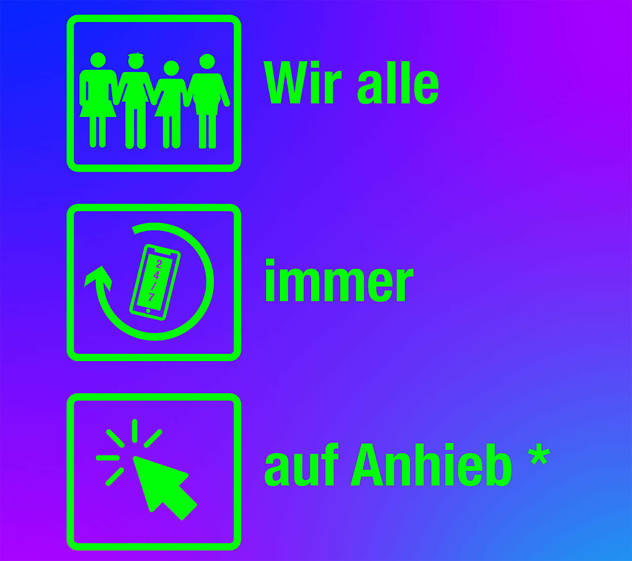 Wir alle / immer / auf Anhieb *auch dann, wenn Kosten und Termine drücken